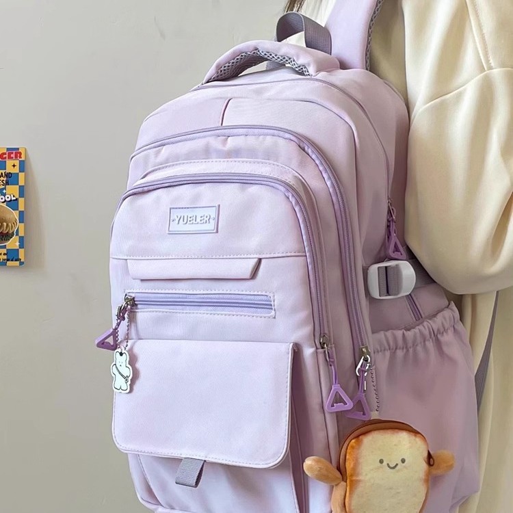 高颜值日系初中大容量书包女高中学生小众双肩包简约百搭电脑背包