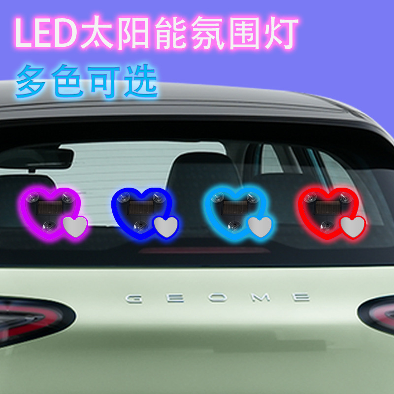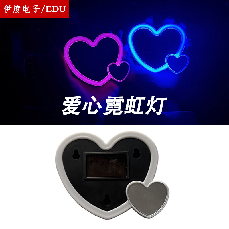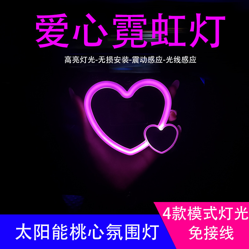 新款汽车太阳能霓虹心形装饰灯汽车LED三角车窗灯车内爱心气氛灯