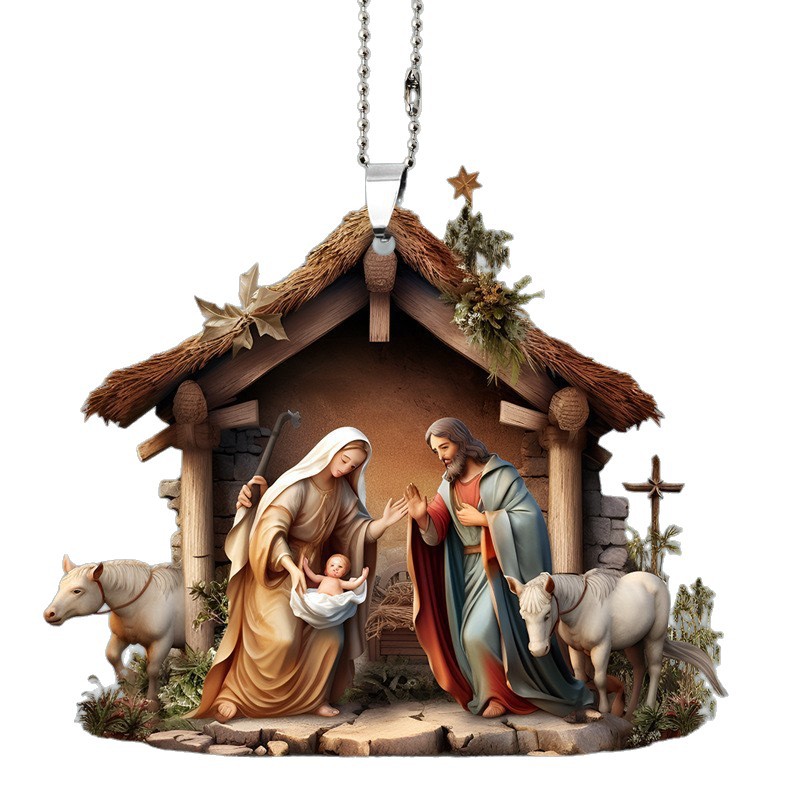 跨境新款亚克力平面创意圣诞节装饰挂件茅草屋房子背包钥匙扣挂坠