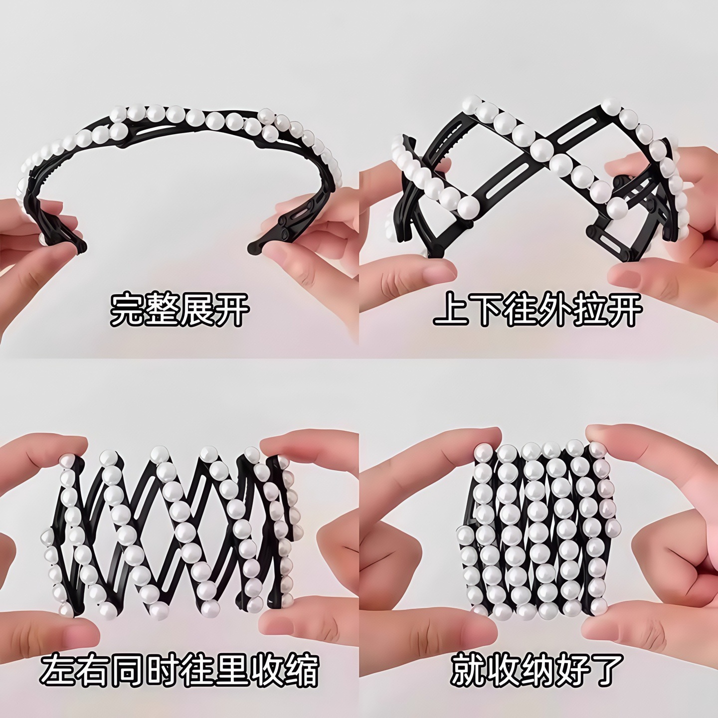 颜色 | 珍珠折叠发箍黑色【1个装】 | | 颜色 | 珍珠折叠发箍粉色【1个装】 |
