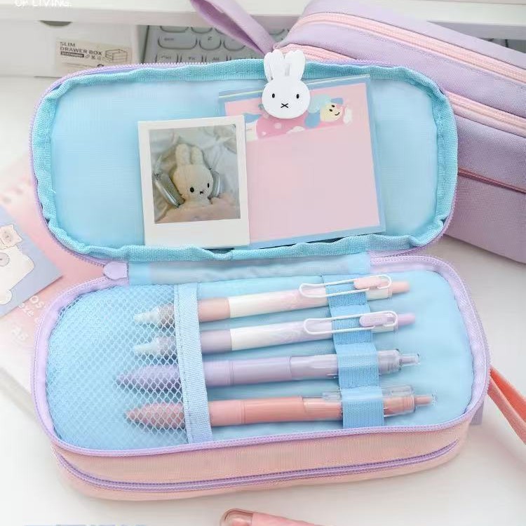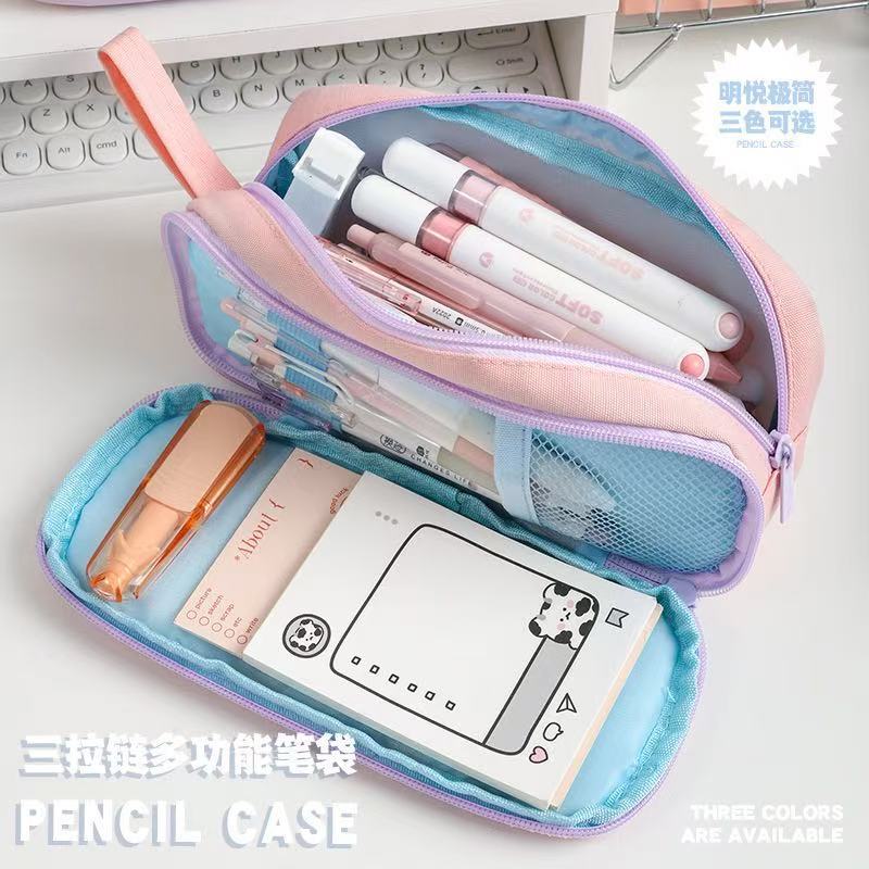简约手提高颜值三拉链多功能大容量笔袋文具收纳盒适用初高中学生