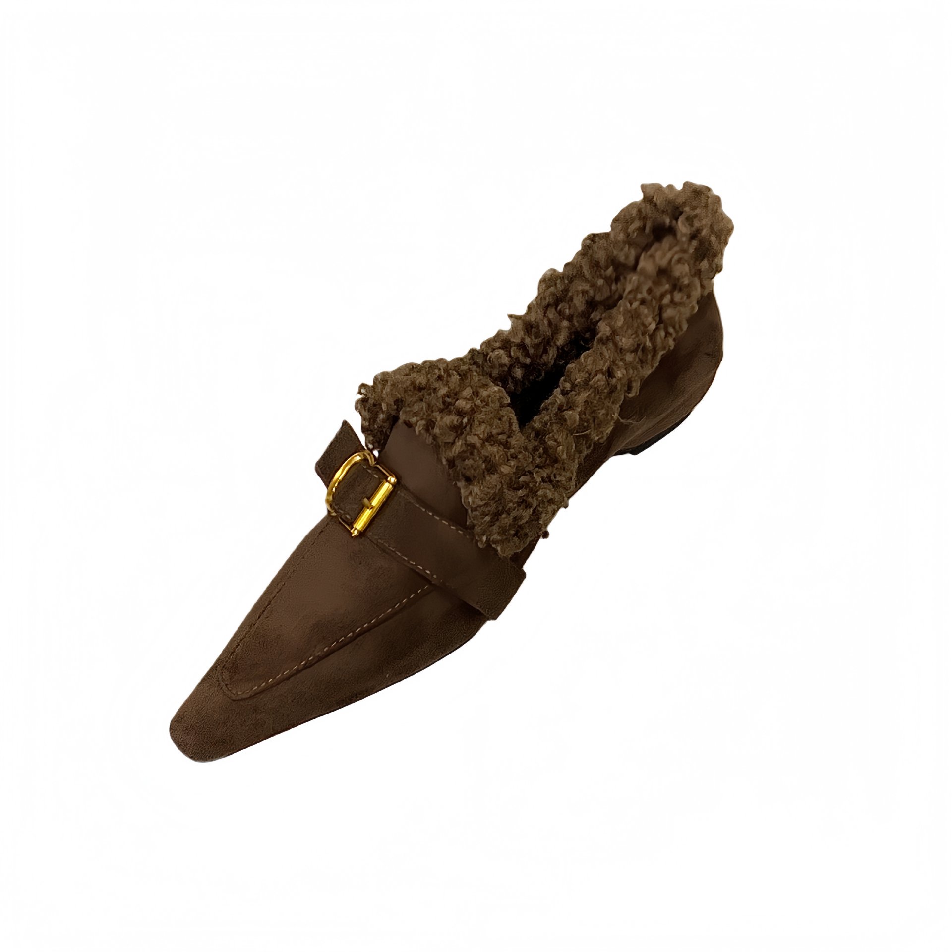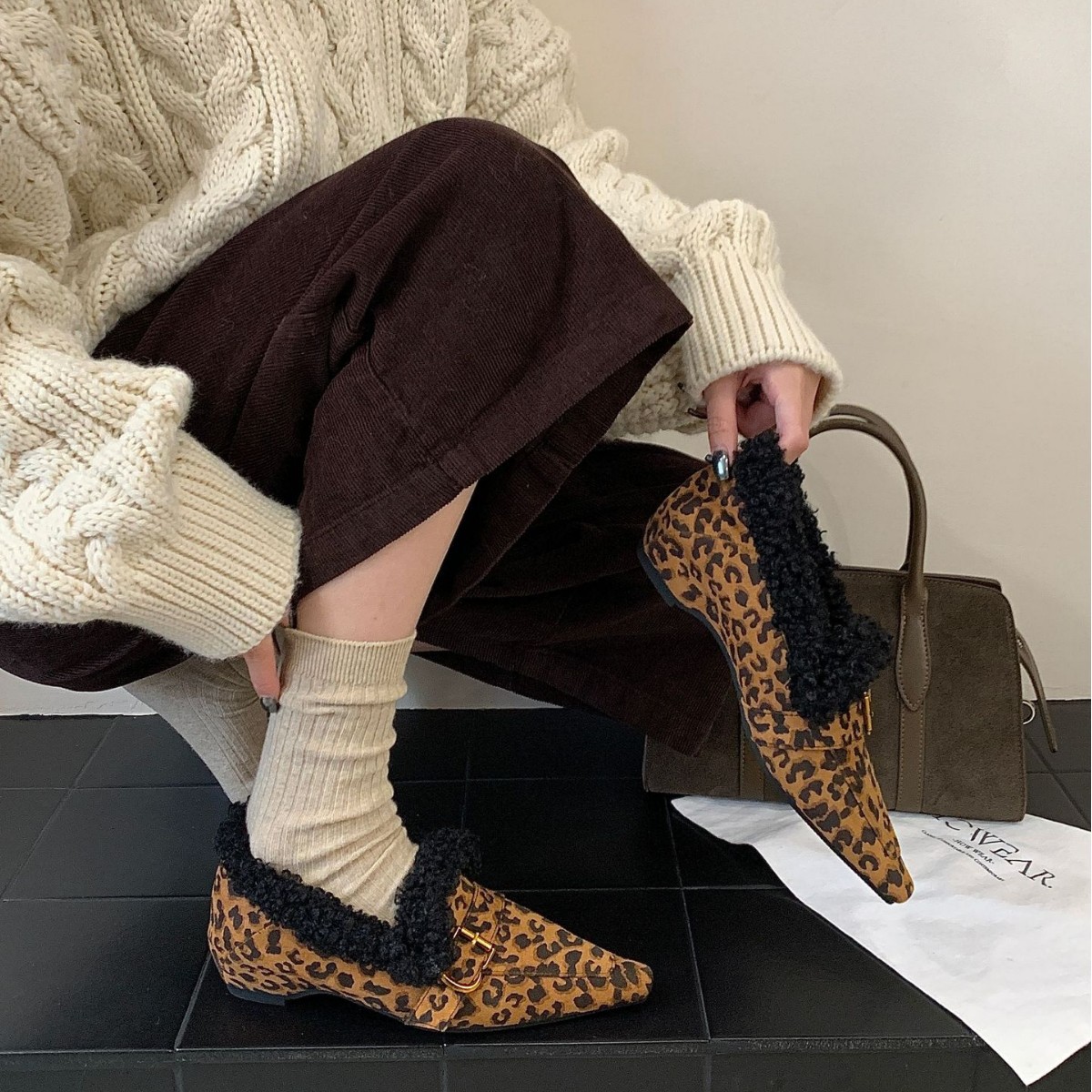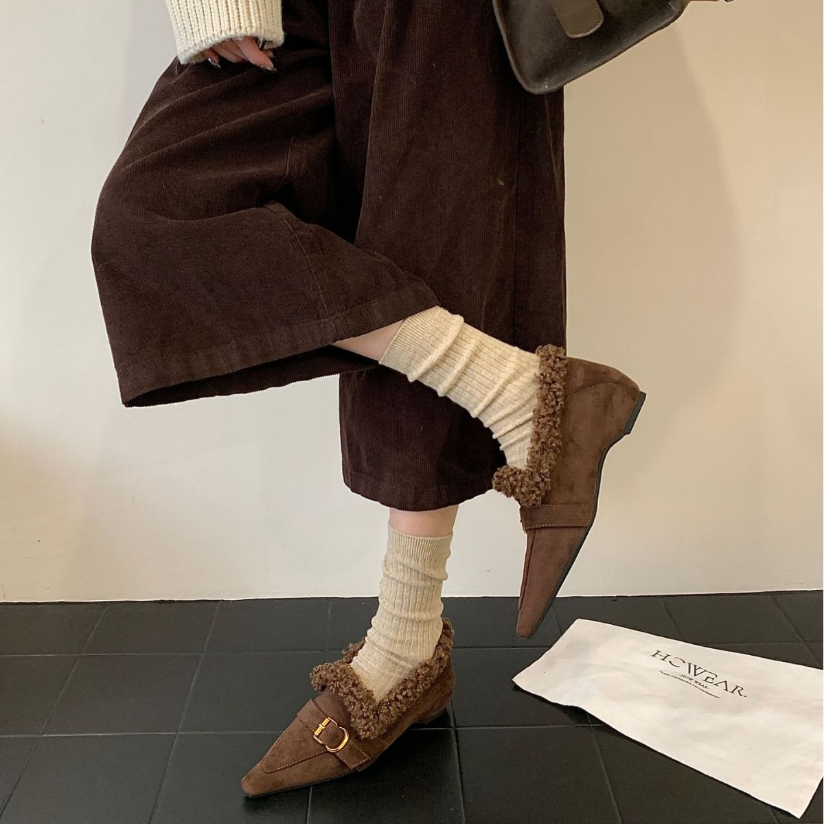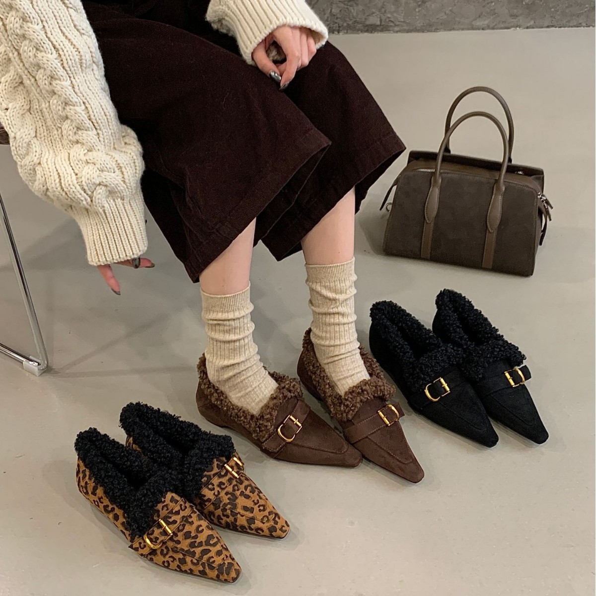 2025新款晚风小方头加绒坡跟毛毛鞋单鞋羊羔毛深口成熟时尚毛鞋女