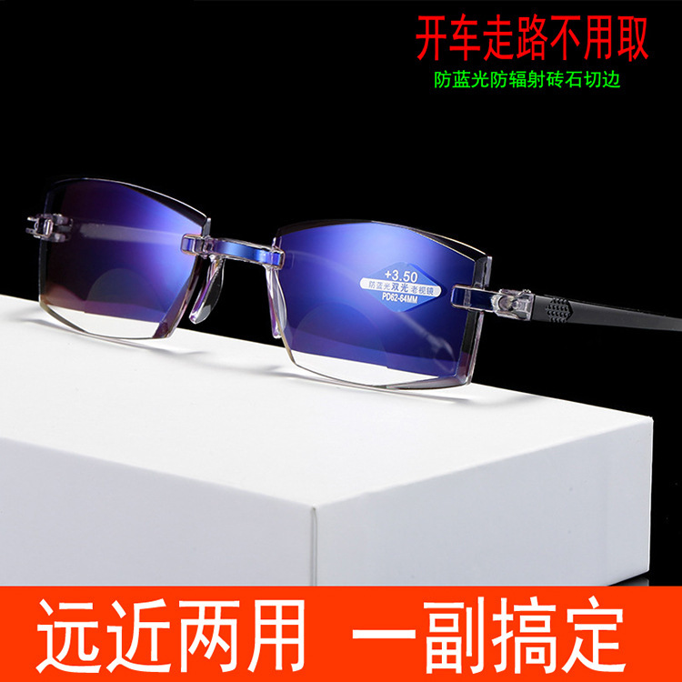 看远看近切边双光老花镜中老年人时尚老花眼镜防蓝光眼镜商务花镜