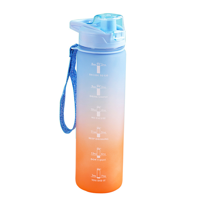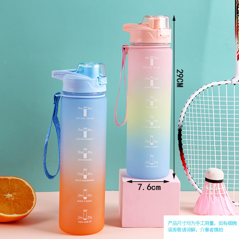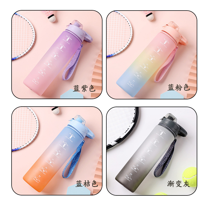 哇哦定制食品级渐变运动水壶便携式塑料随手杯带刻度户外1000ML水