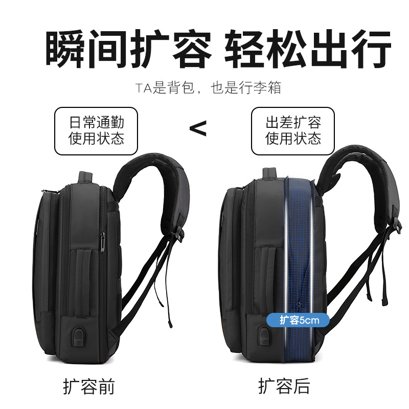 新款商务电脑包男女士通用双肩包扩容大容量防水背包定制印刷logo