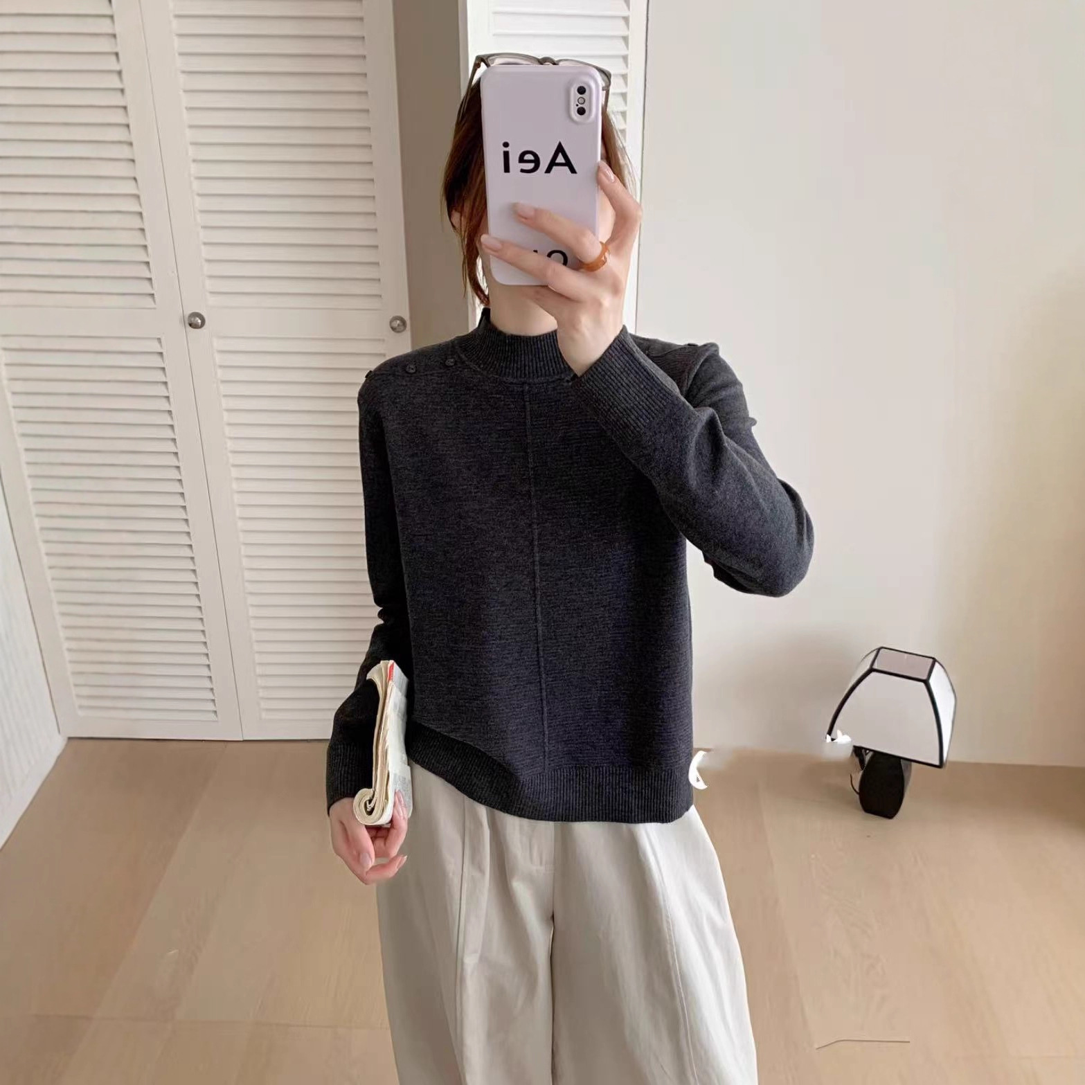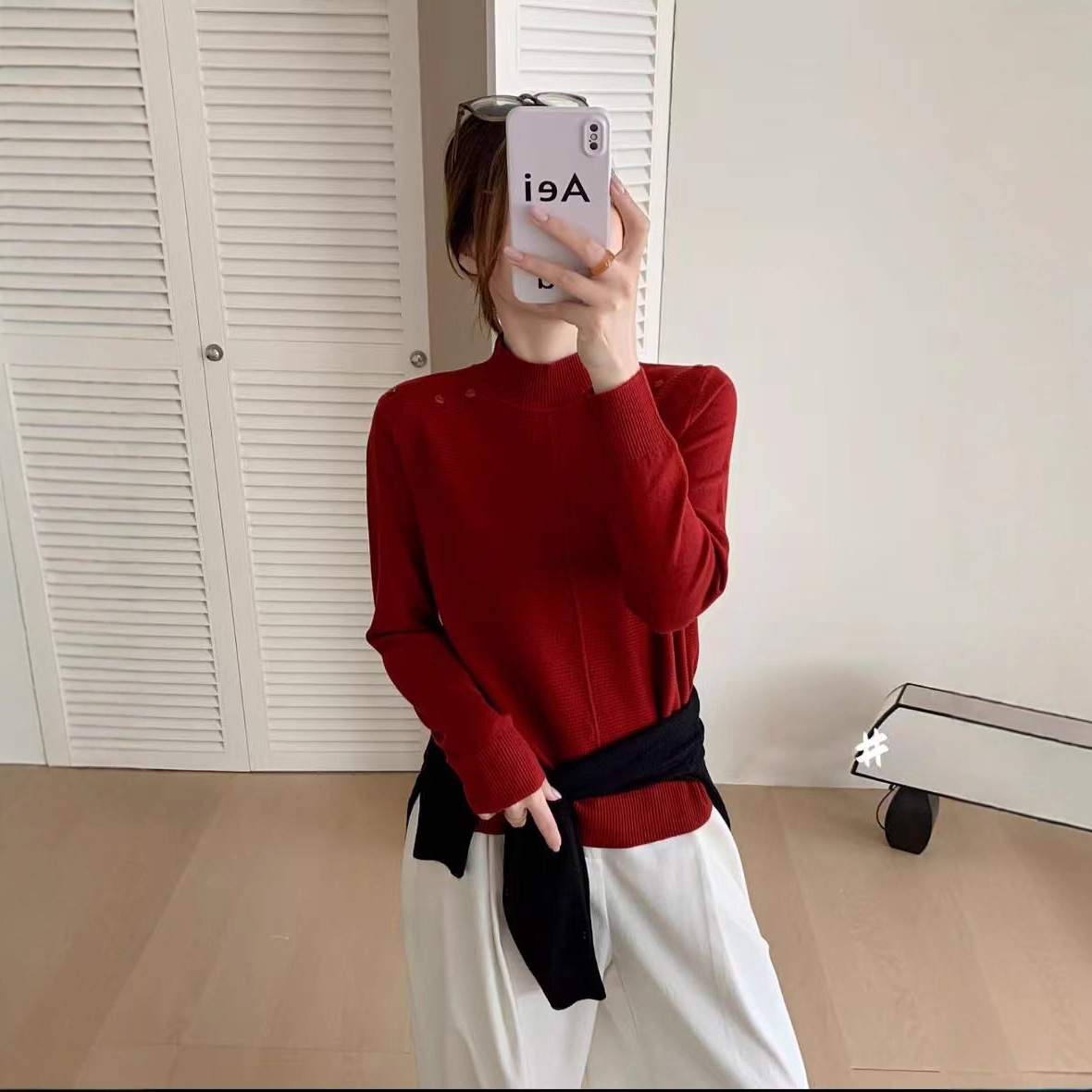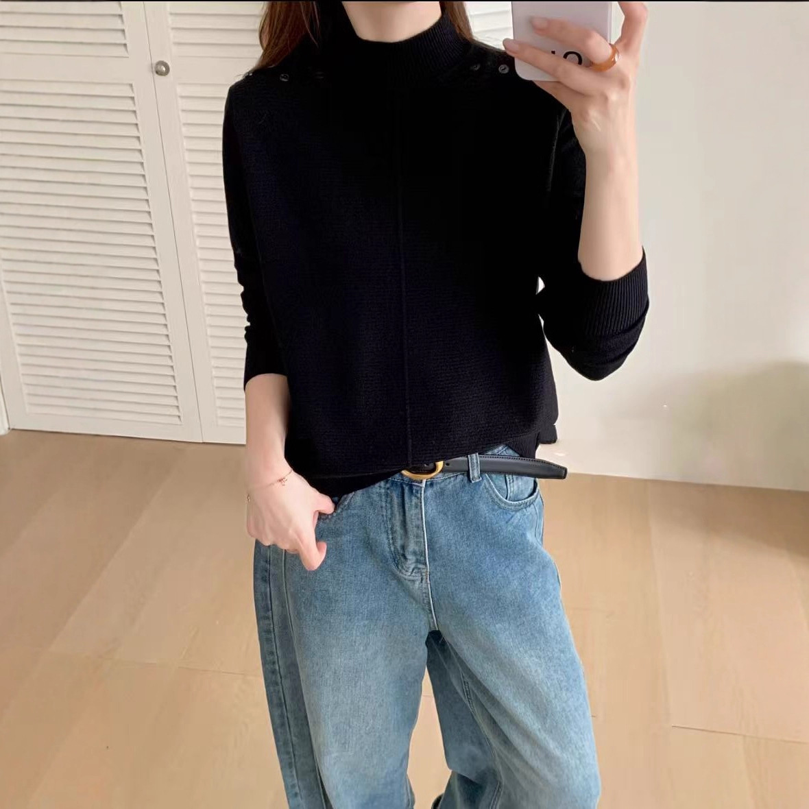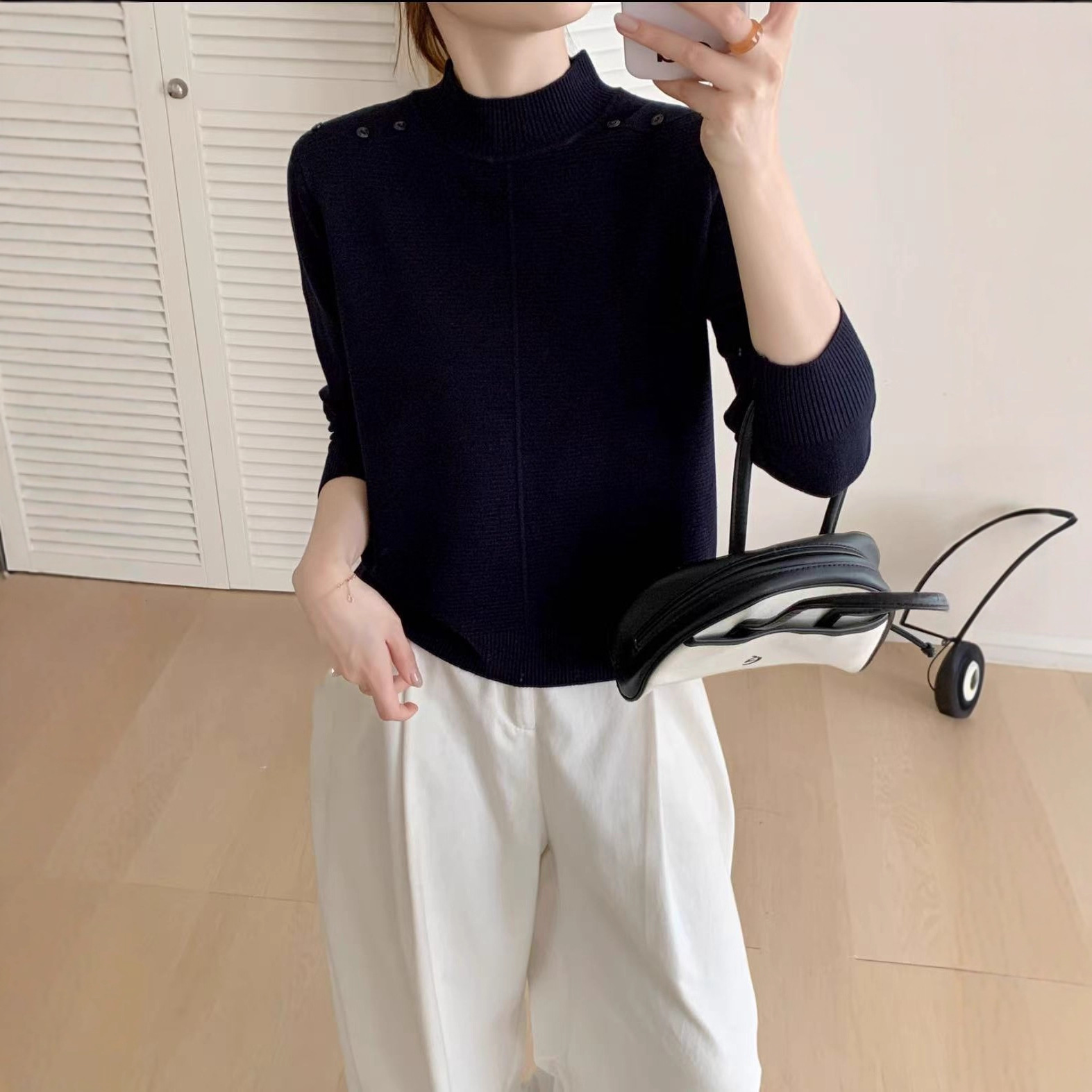 现货支持小单定韩版时尚半高领外穿针织衫设计感小众慵懒宽松上衣