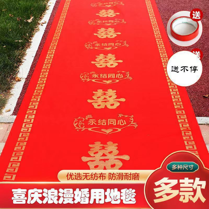 结婚开业大吉乔迁之喜一次性加厚特厚足米鲜红无纺布婚庆庆典地毯