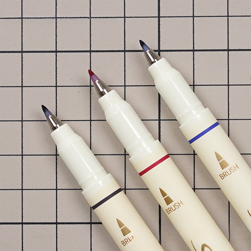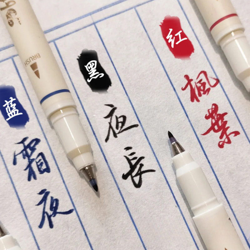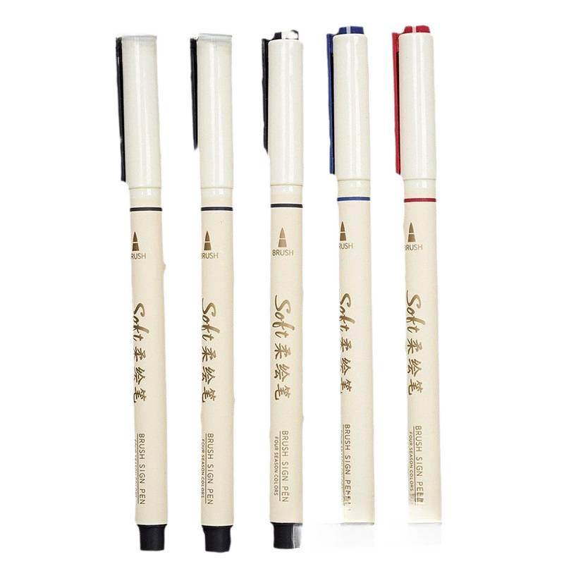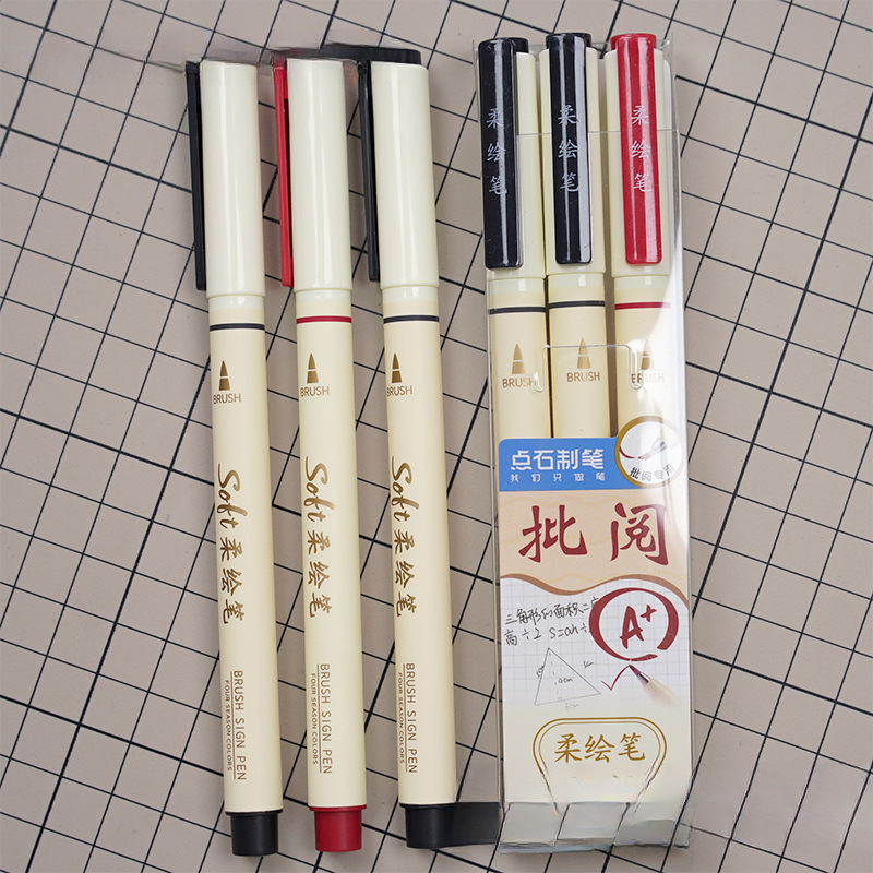 不易记号笔黑色柔绘柔绘笔叶批改作业点石蓝色软头勾线笔红笔透纸