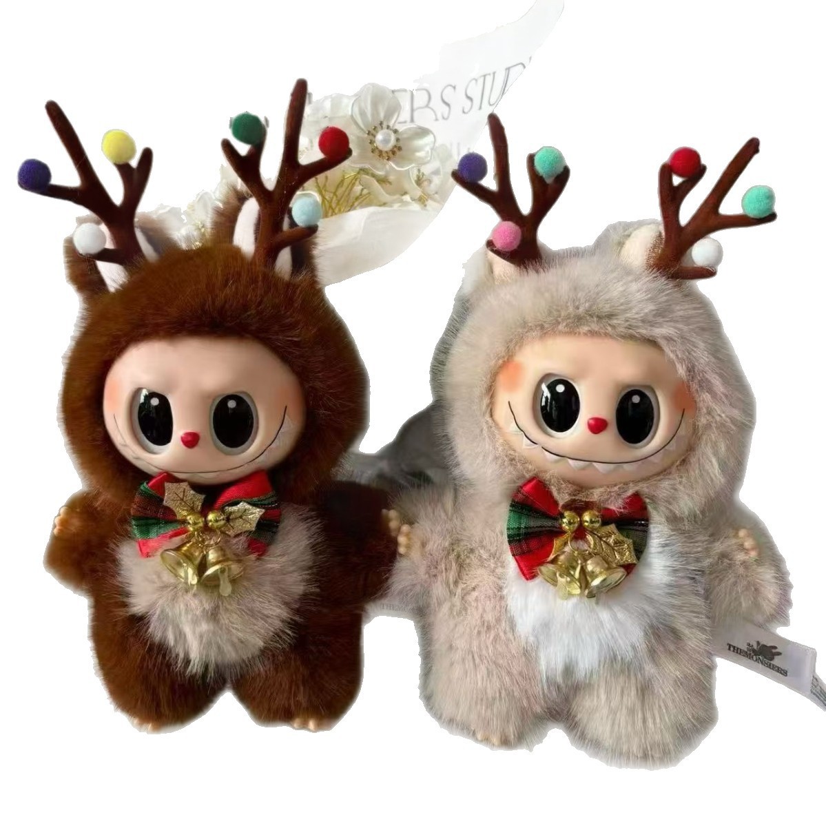现货爆款圣诞节麋鹿毛绒公仔labubu可爱搪胶拉布布挂件玩偶娃娃机