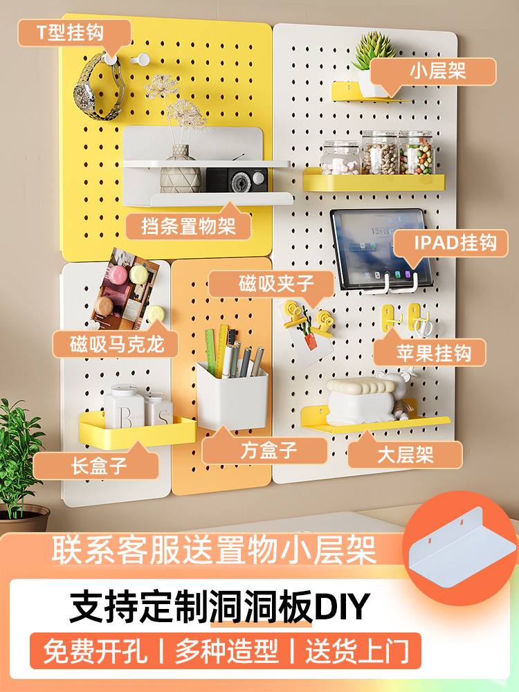 墙上洞洞板置物架免打孔儿童书桌墙壁金属学习桌墙面磁吸收纳
