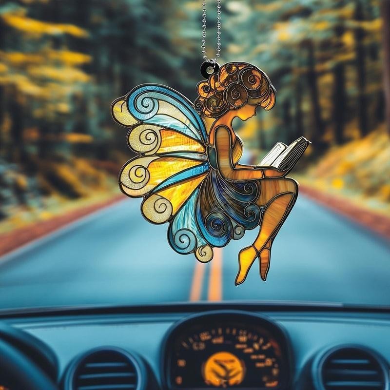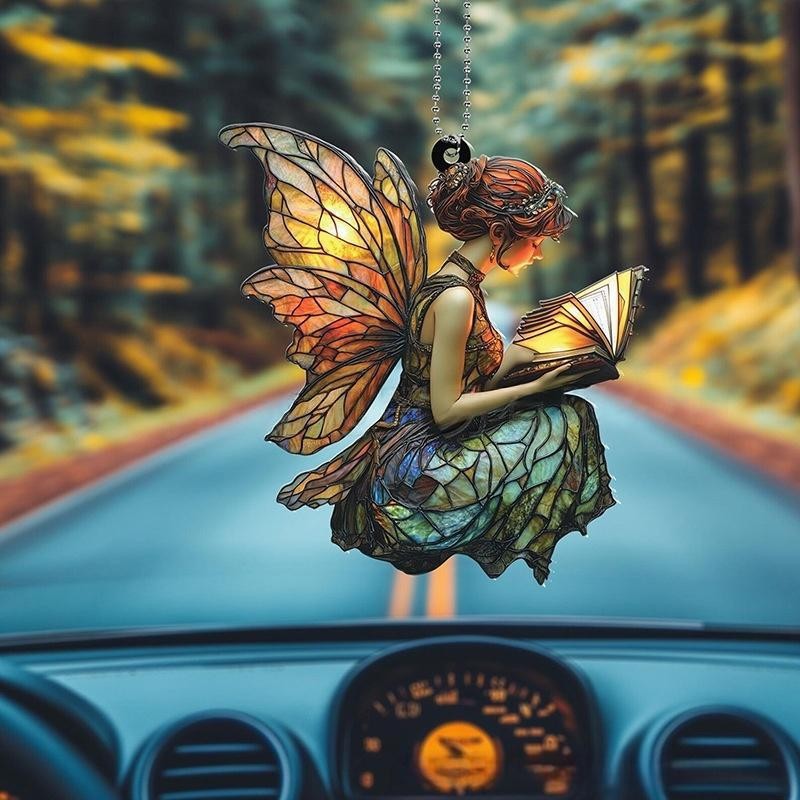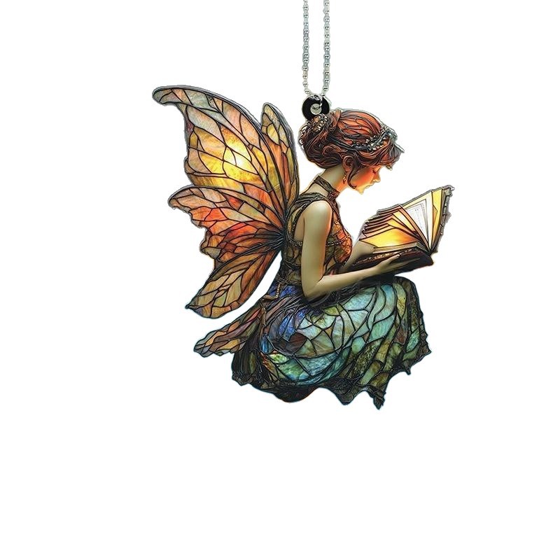 跨境爆款带翅膀的天使装饰挂饰2D平面亚克力打印车载装饰家居摆件