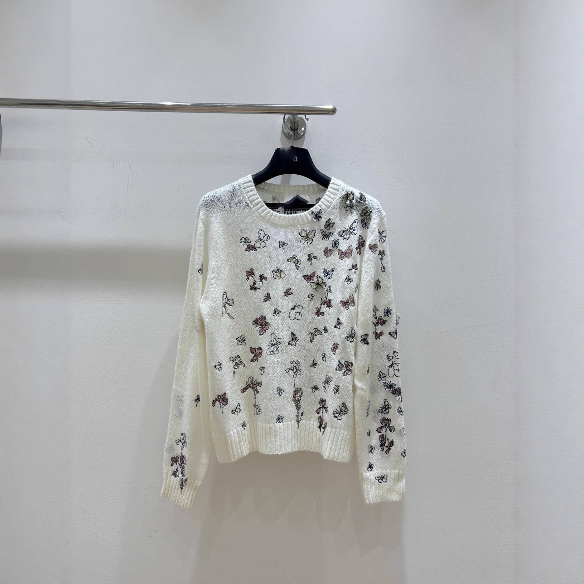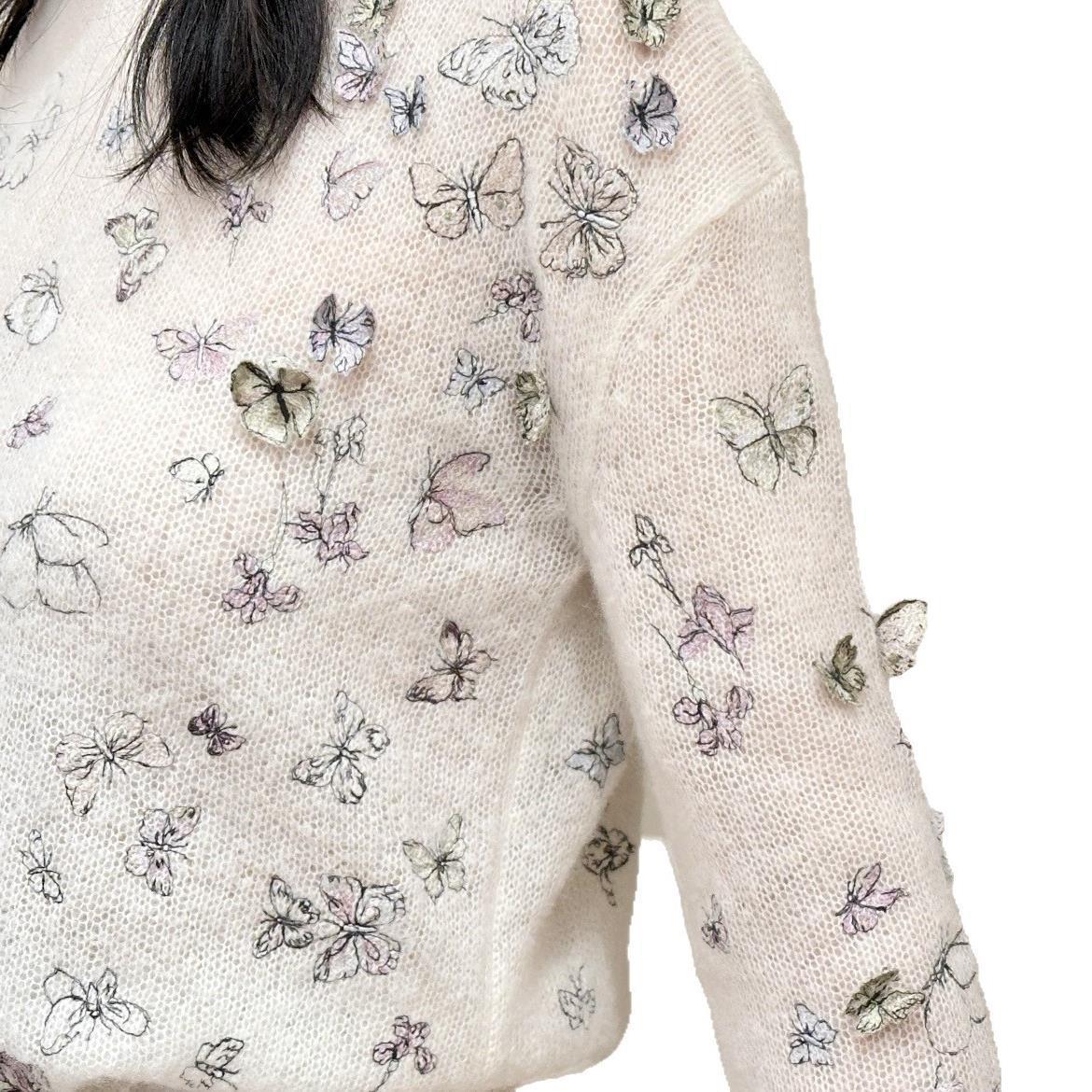 南油正确高版本D家25年秋季新款蝴蝶刺绣圆领长袖针织衫女上衣