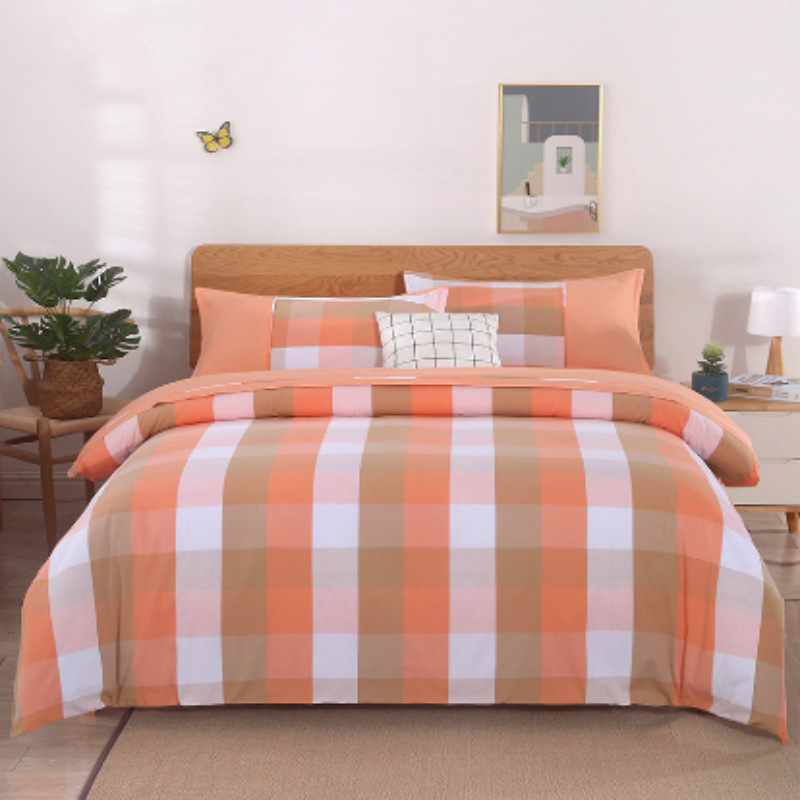 秋冬加厚全面老粗布四件套床上用品家用双人简约格子纯棉床单被套