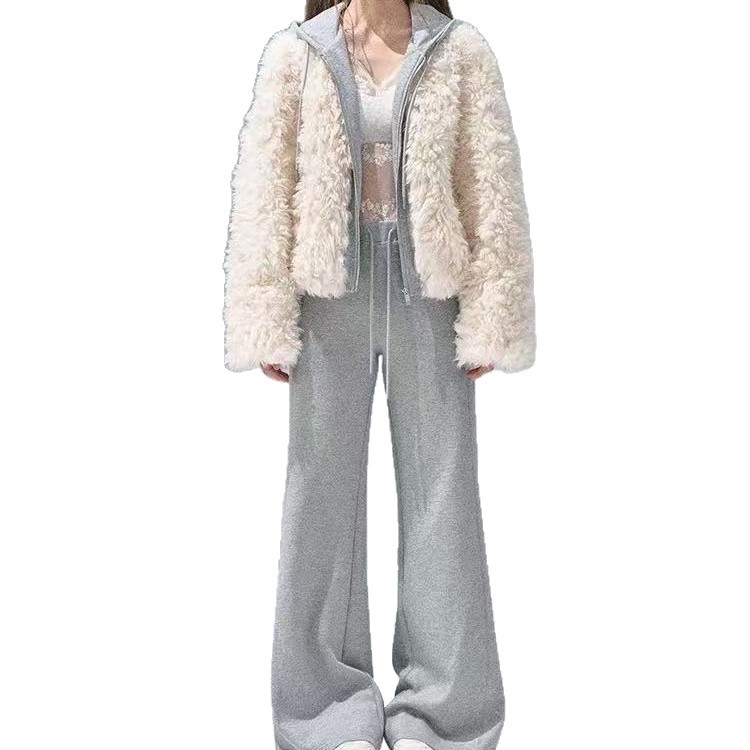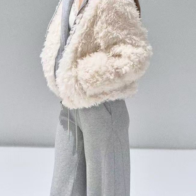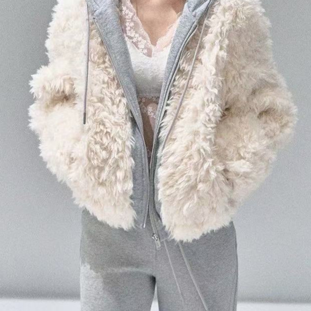 假两件连帽拼接环保皮草女2025秋冬季新款毛毛短外套