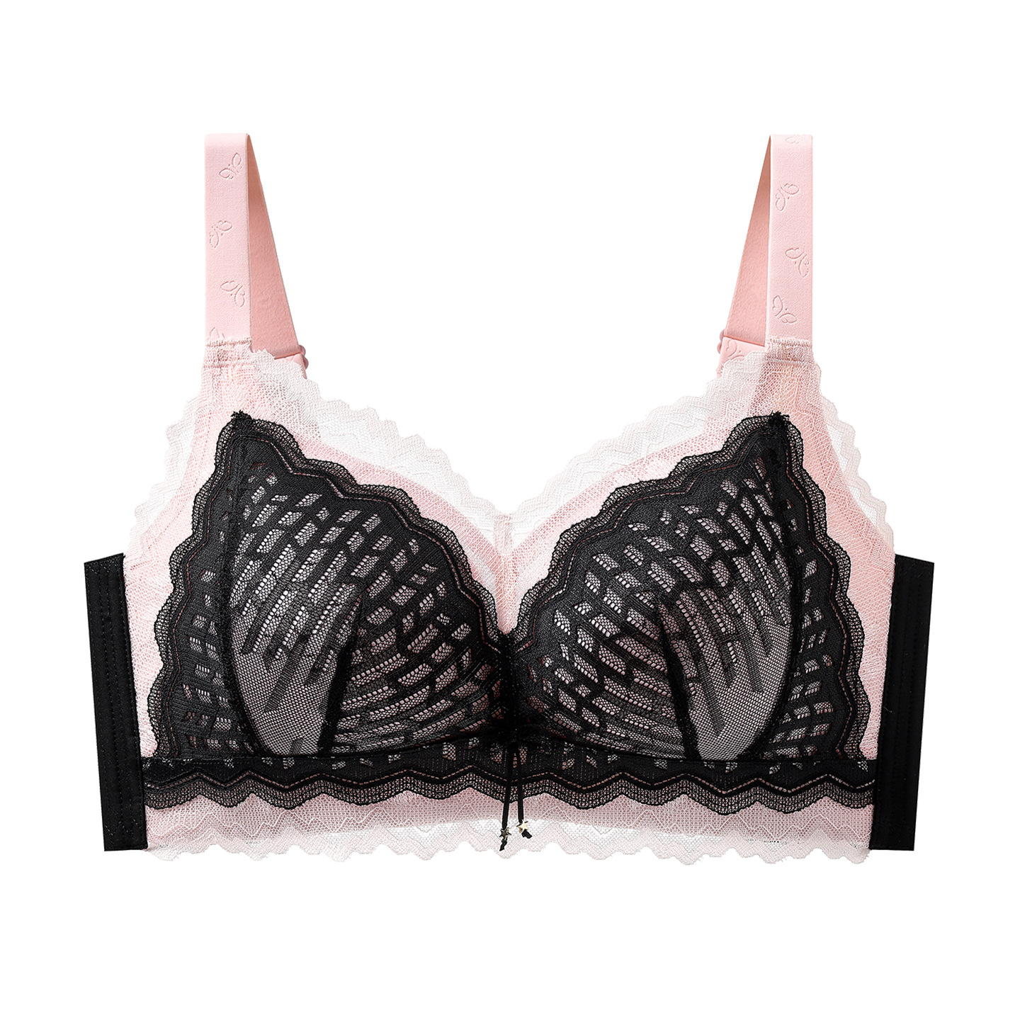 轻柔深v性感大码文胸 精美蕾丝撞色设计无钢圈时尚大码内衣 跨境