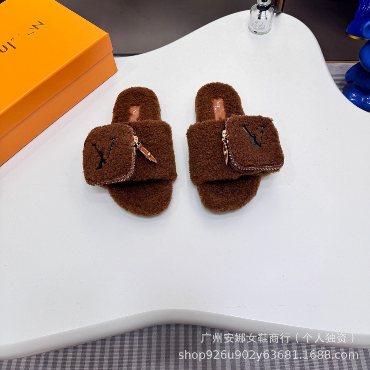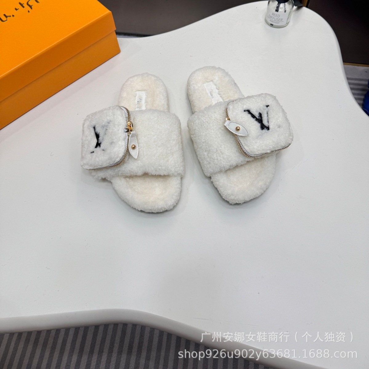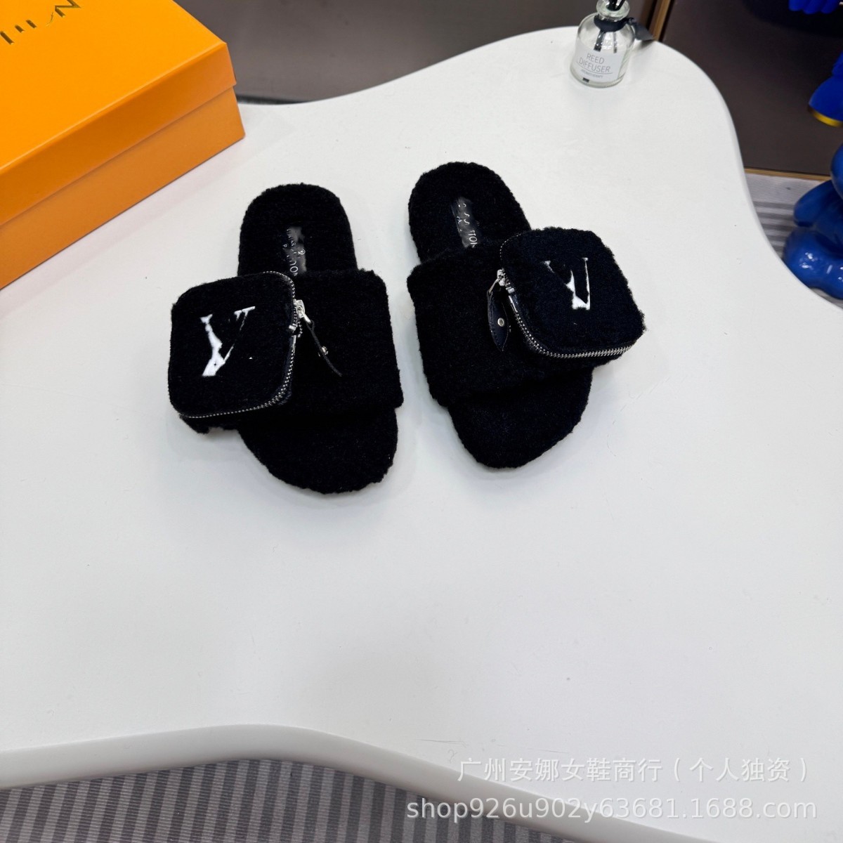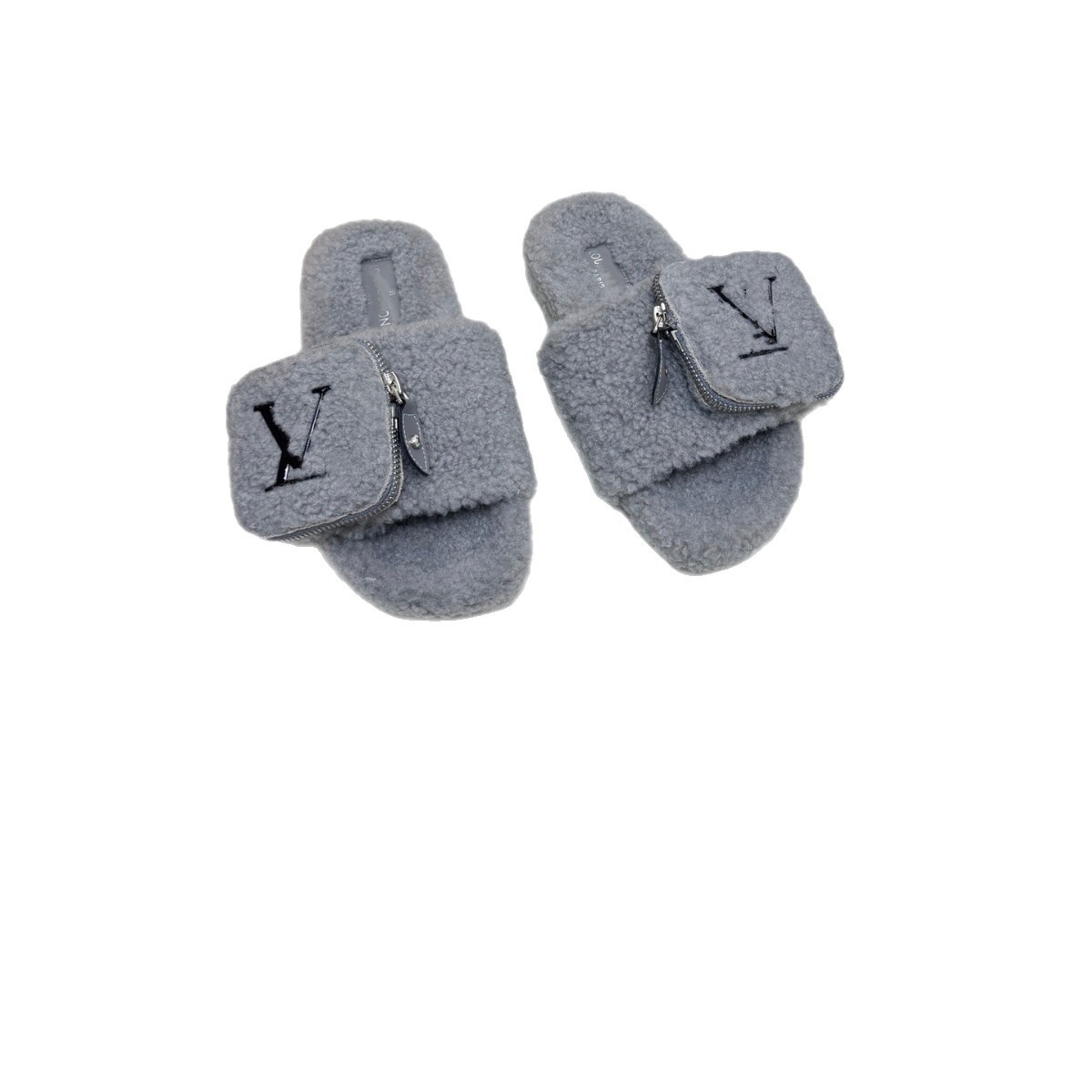 高品质驴家新款毛毛拖小包包拉链羊羔毛厚底一脚蹬百搭外穿一字拖