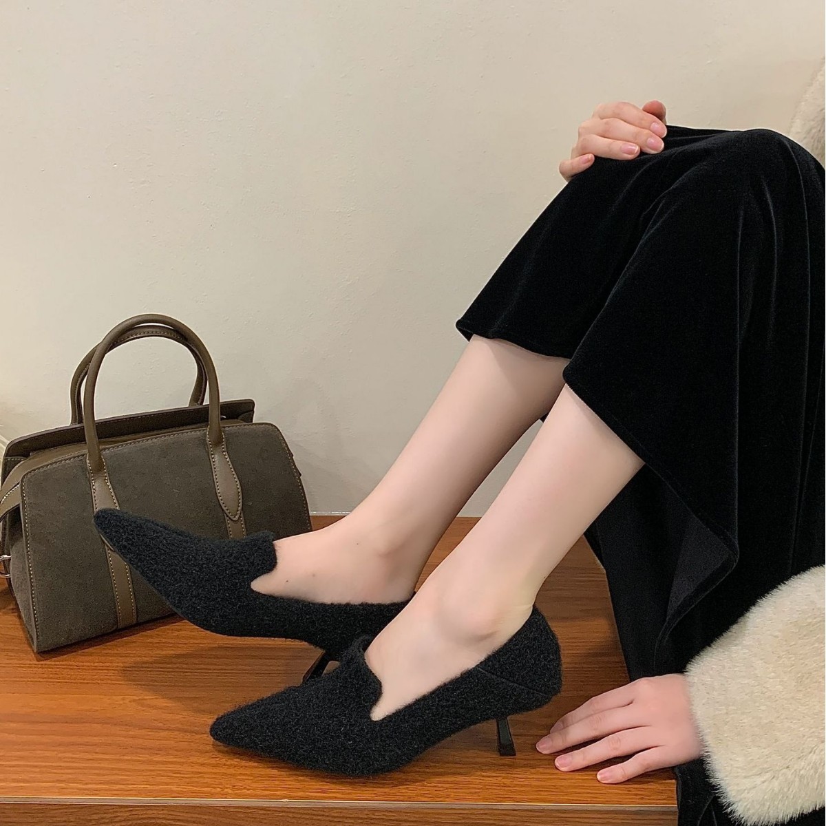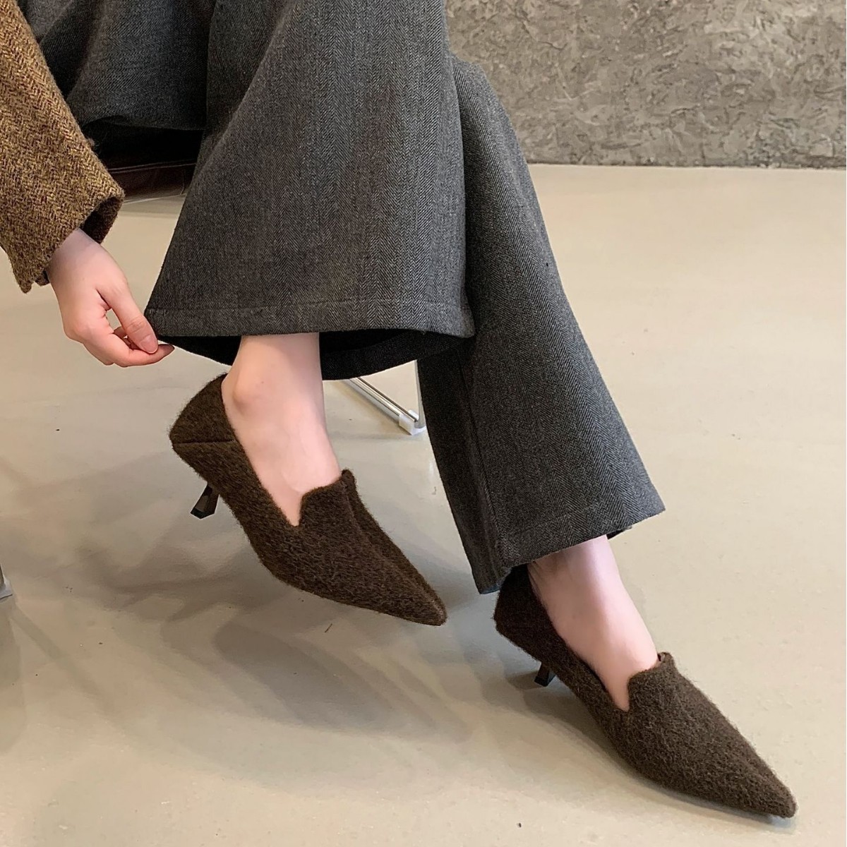 2025新款冬季时尚休闲毛毛鞋韩版尖头深口舒适百搭保暖毛绒女单鞋