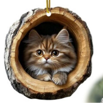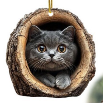 跨境2D新品树洞小猫咪挂件圣诞树家居派对装饰亚克力平面车载挂件