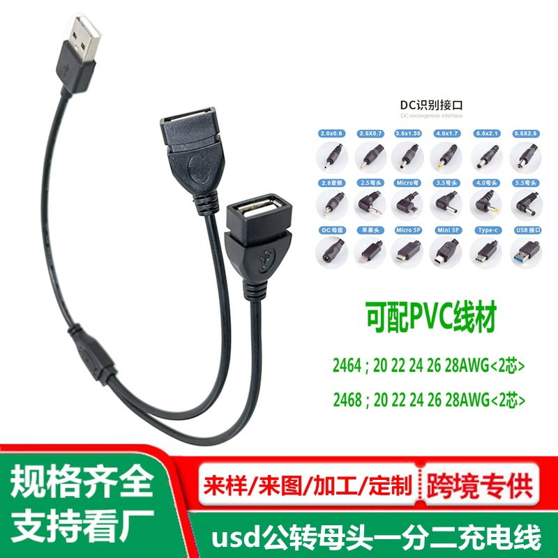 一拖二电源线dc转usb 监控平板电脑一分二5521充电线 3.51.35dc线