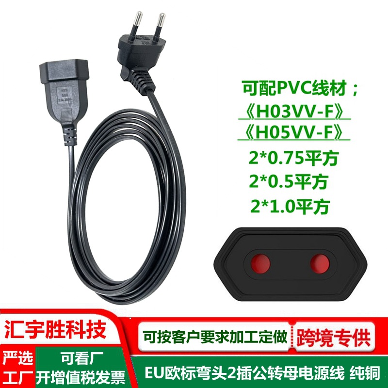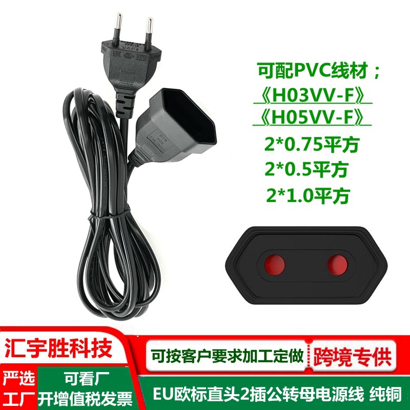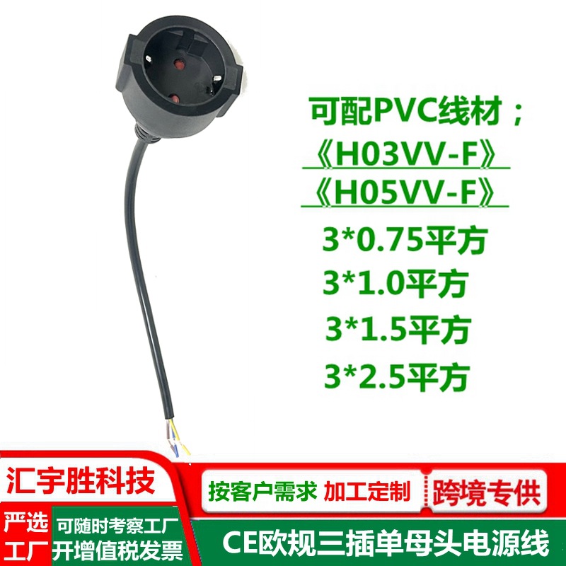 欧规母头电源线 3芯 德标法式母座插头带线 欧标公母对接ac插头线