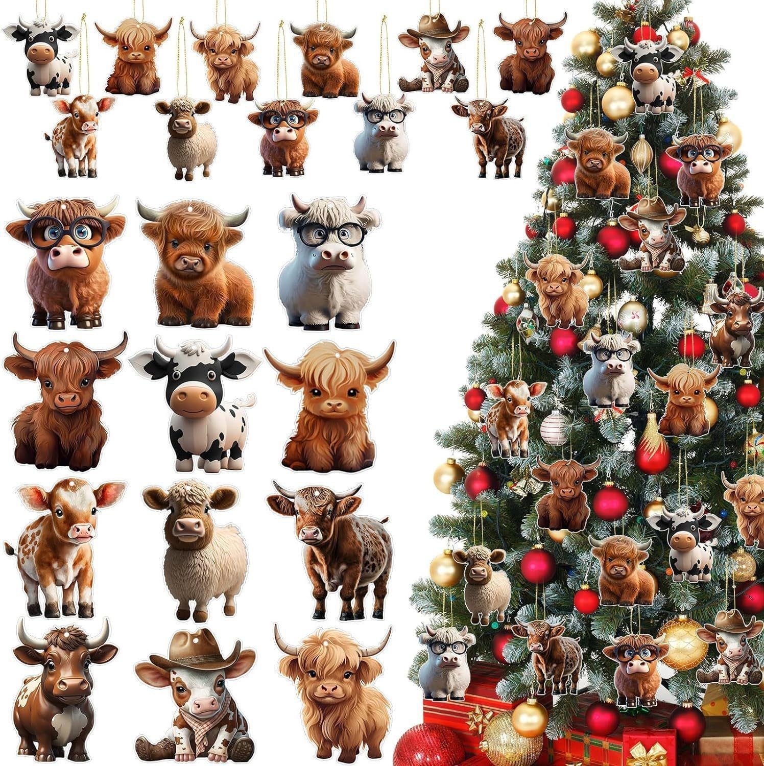跨境爆款奶牛装饰木制高地奶牛装饰发财树牛镂空吊坠各种节装挂件