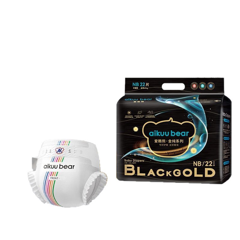 爱酷熊黑金纸尿裤薄款清爽铂金装新生儿防漏尿不湿