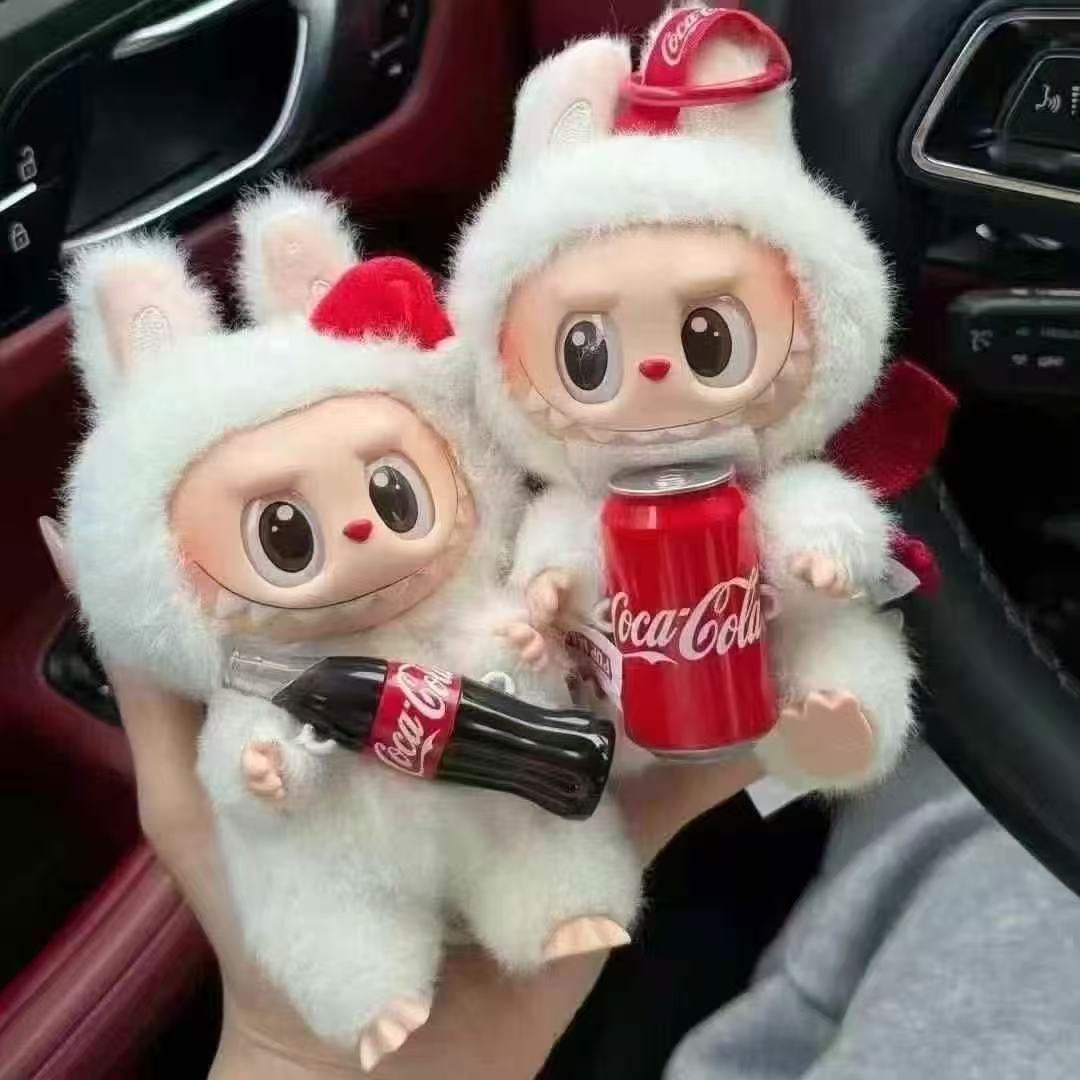 泡泡LABUBU潮玩盲盒毛绒玩具搪胶脸可乐瓶子罐子挂件毛绒搪胶可爱