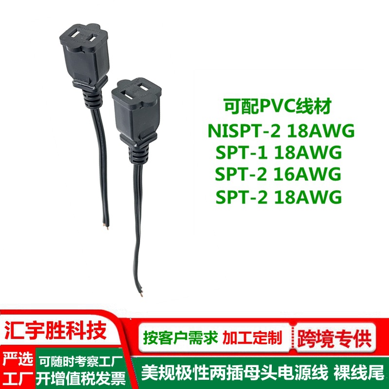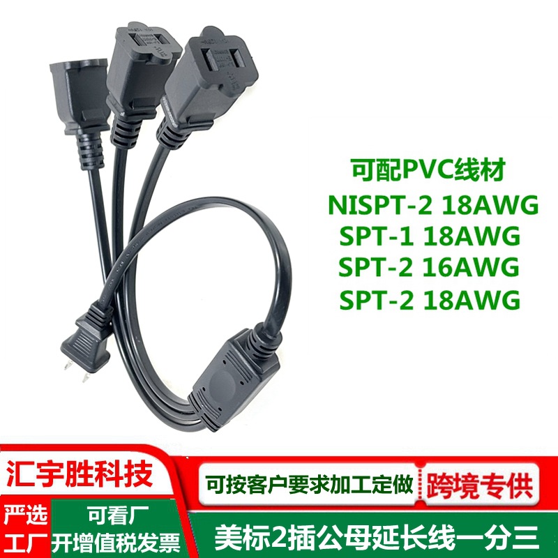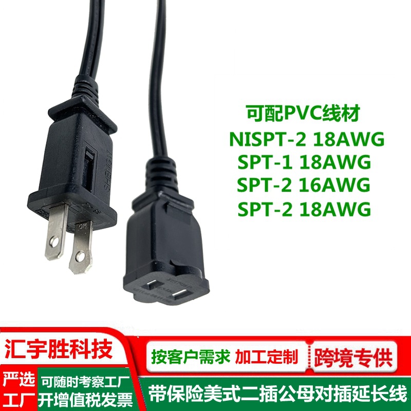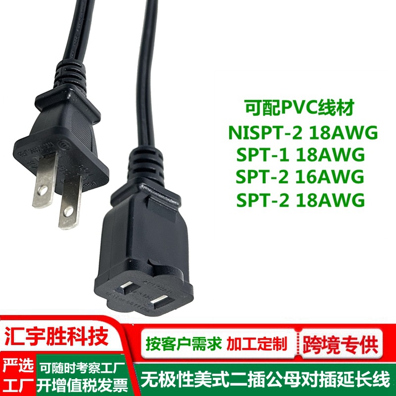 ac母头电源线 美式 美标 美规 SPT-2 扁插延长线 一大一小插头线