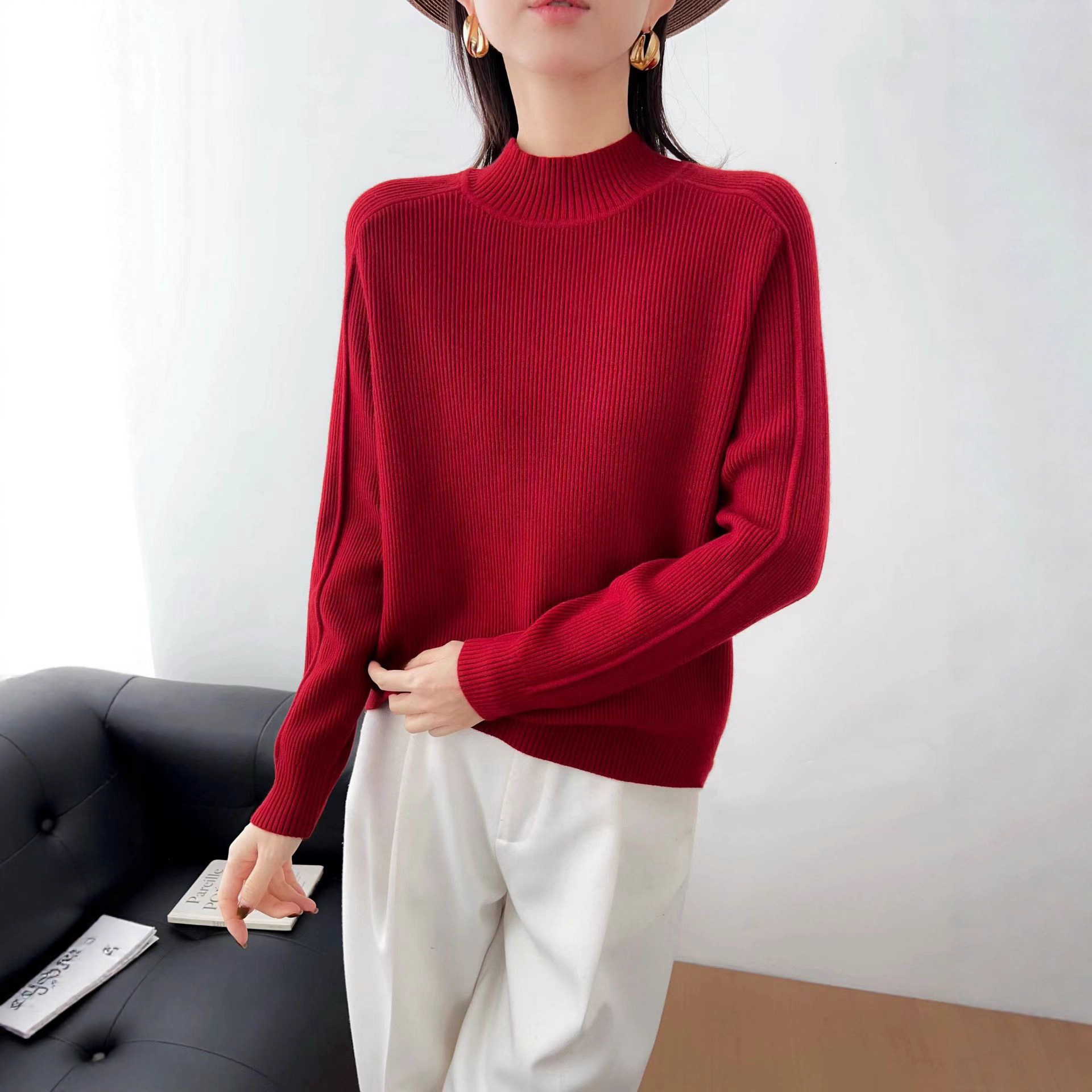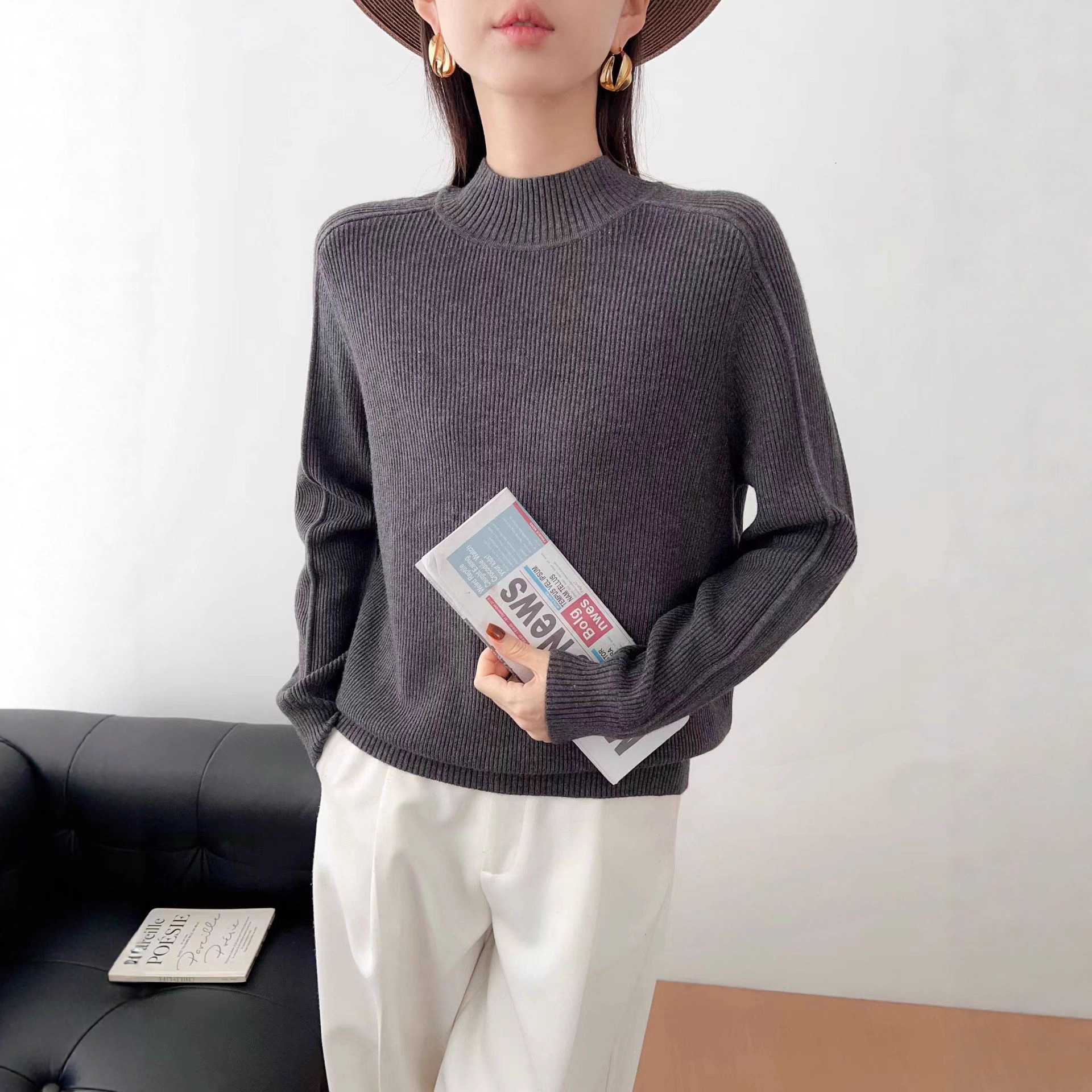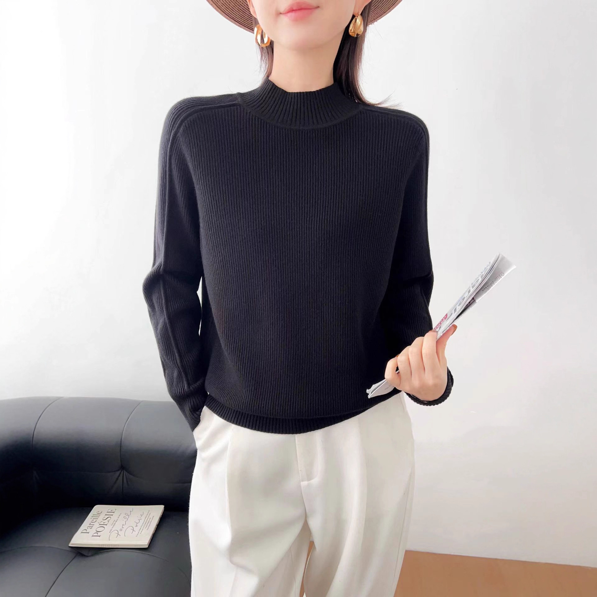 韩风显瘦圆领百搭针织衫2025秋冬坑条内搭毛衣外穿女新品推荐