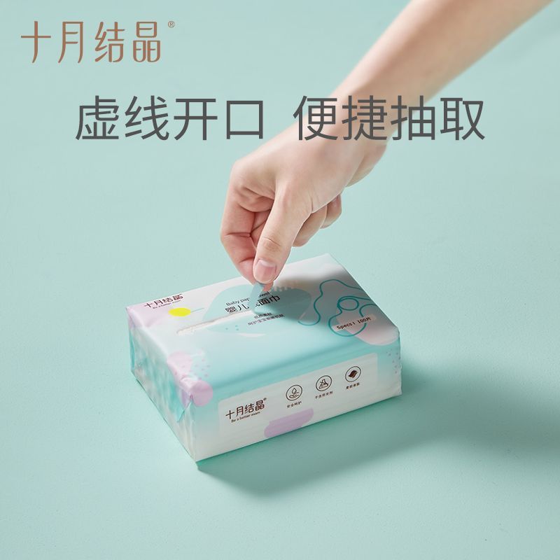 十月结晶婴幼儿纸面巾手口屁3层加厚亲肤100抽纸巾原生木浆