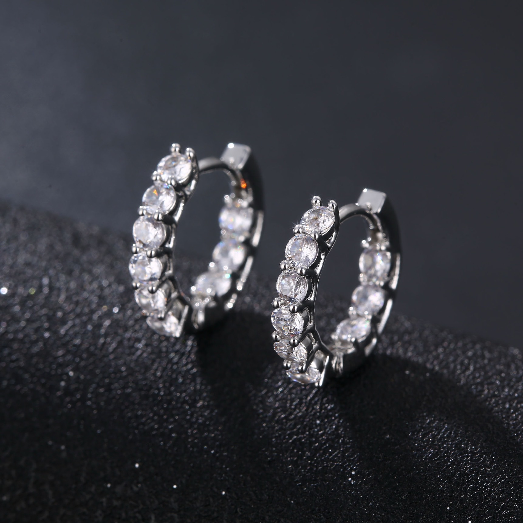 方形白色镶钻几何型方块耳环 潮流网红耳扣 圆钻耳饰
