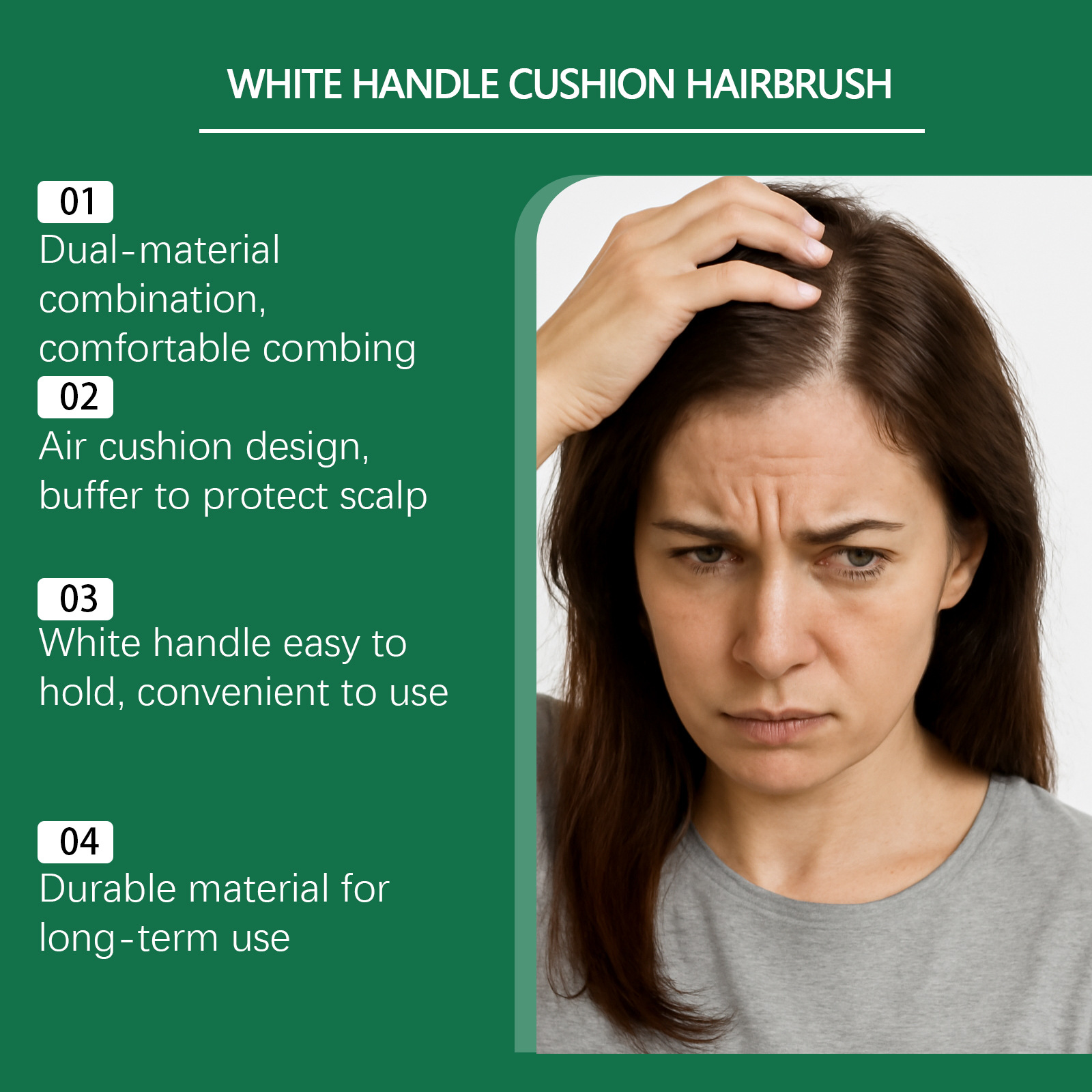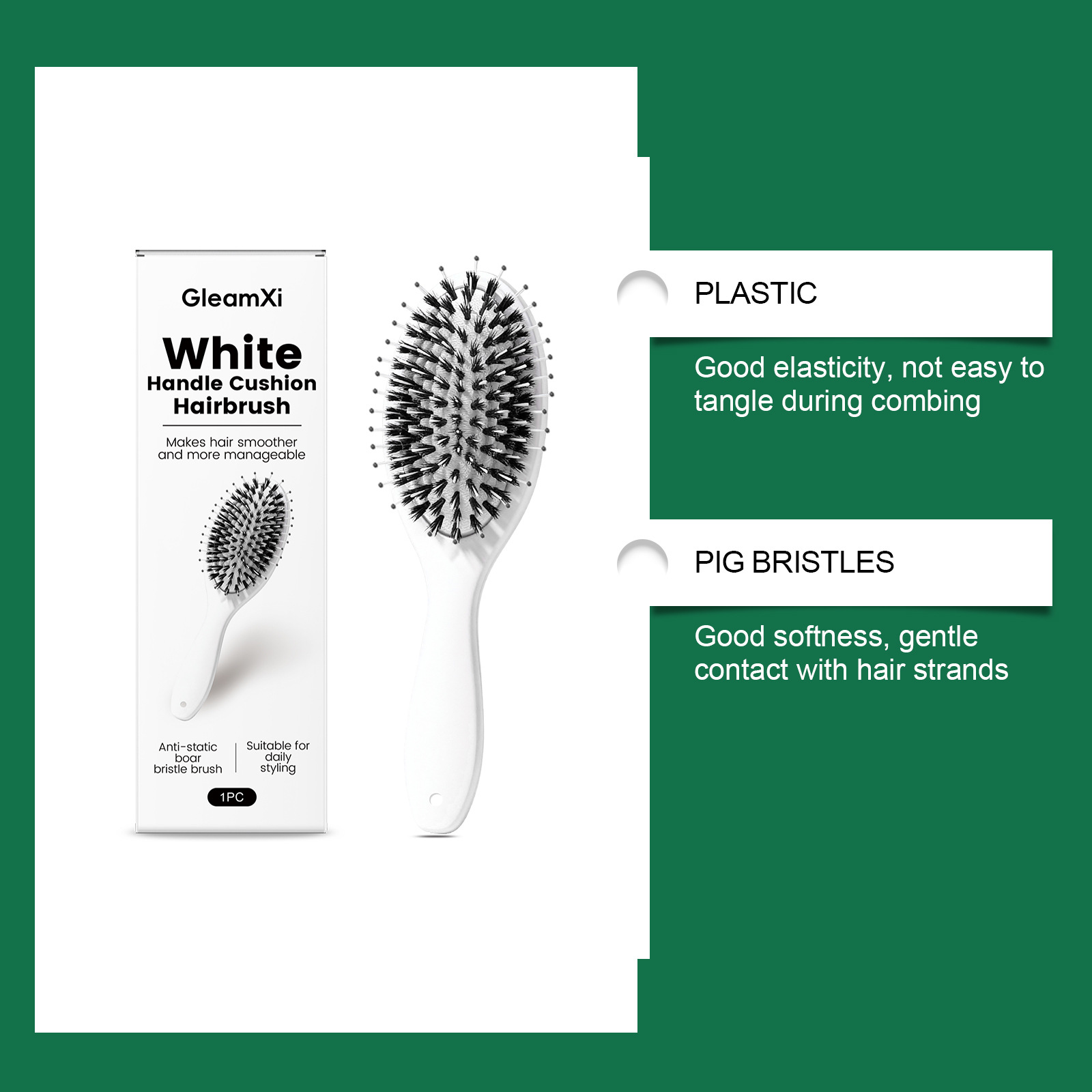 GleamXi白柄气垫鬃毛发刷 尼龙猪鬃毛气囊梳日常头皮按摩美发梳理