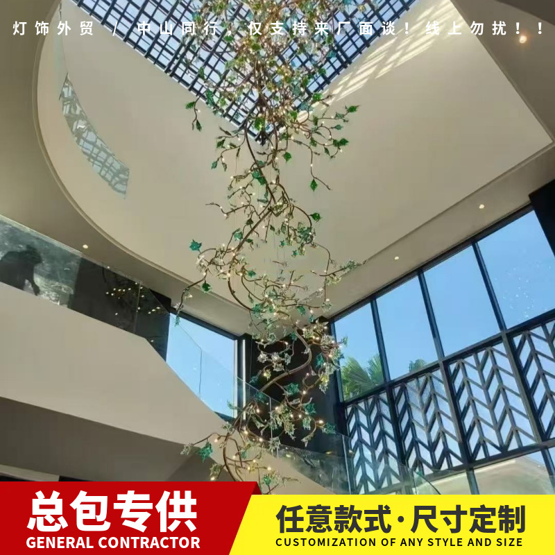 酒店大堂非标玻璃吊灯复式楼轻奢别墅大厅装饰树枝叶片灯工程灯具