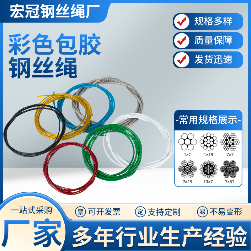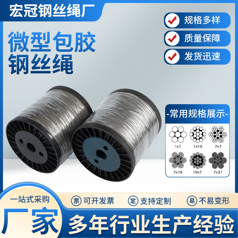 批发304不锈钢微型包胶钢丝绳0.3mm-0.6mm包胶包塑细软小钢丝绳