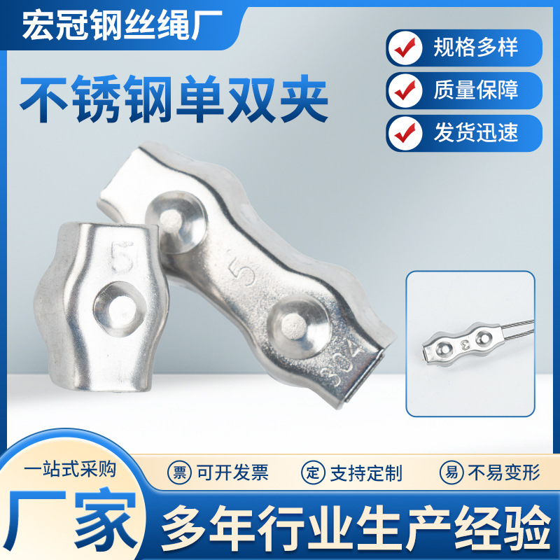 304不锈钢钢丝绳单双夹配件 刹车紧固夹头钢丝绳卡扣锁头M2-M10