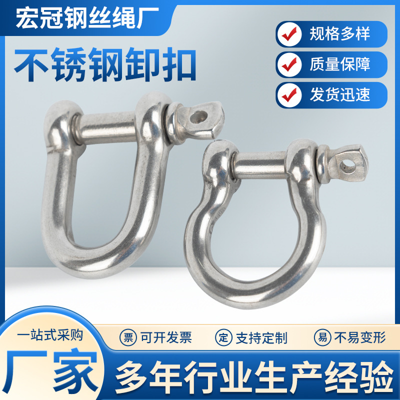 不锈钢D型卸扣M4-M38船用卸扣弓形马蹄链条扣船用重型起重卸扣