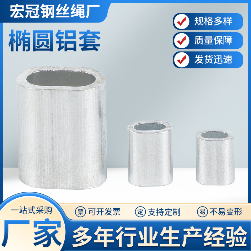 批发钢丝绳铝套铝夹头椭圆单夹头椭圆环孔钢丝快速连接椭圆铝套