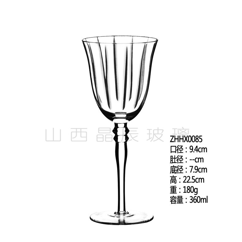 人工吹制16oz红酒杯 460ml水晶红酒杯竖纹色料接杯杆高脚香槟杯