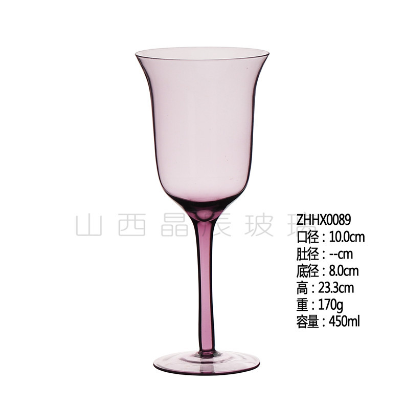 人工吹制15oz红酒杯 450ml水晶红酒杯色料喷色广口杯高脚杯鸡尾杯