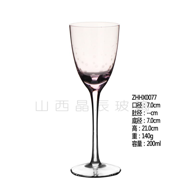 人工吹制7oz红酒杯 200ml水晶红酒杯喇叭口磨花斑点高脚杯鸡尾杯