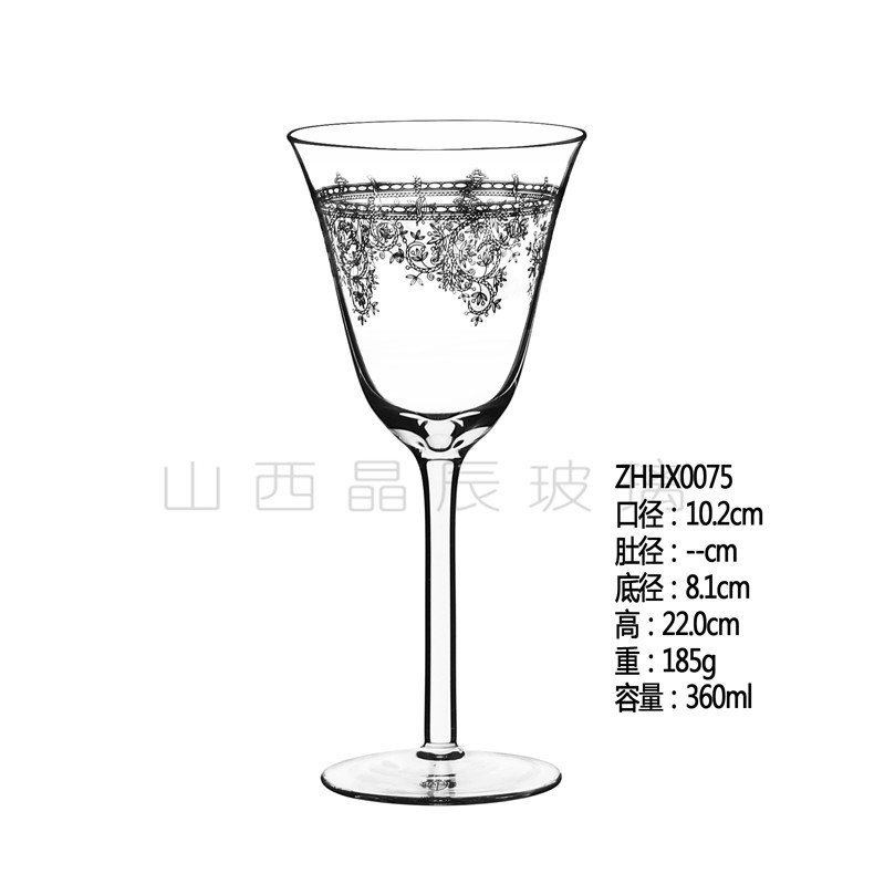 人工吹制12oz红酒杯 360ml水晶红酒杯广口喇叭口玫瑰高脚杯鸡尾杯
