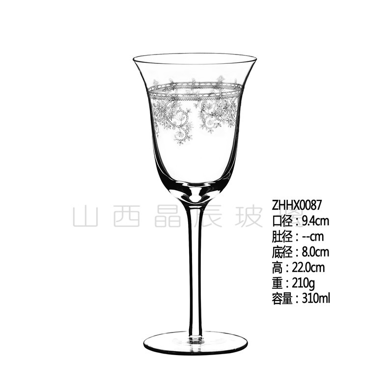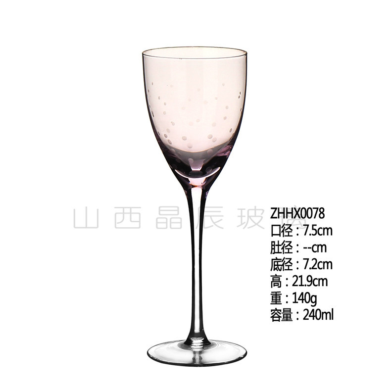 人工吹制8oz红酒杯 240ml水晶红酒杯喇叭口磨花斑点高脚杯鸡尾杯