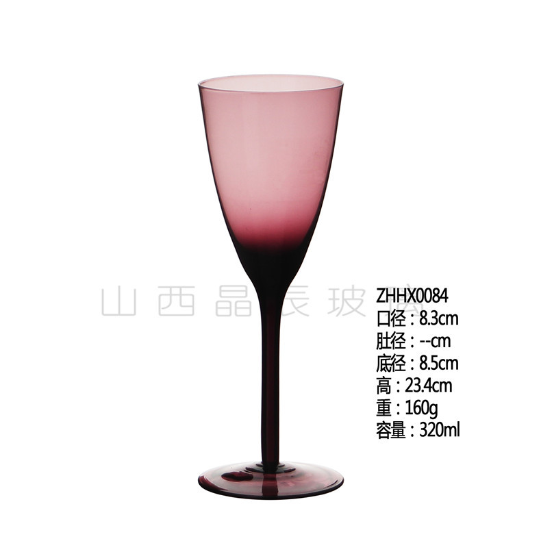 人工吹制12oz红酒杯 340ml水晶红酒杯色料渐变色高脚杯鸡尾杯