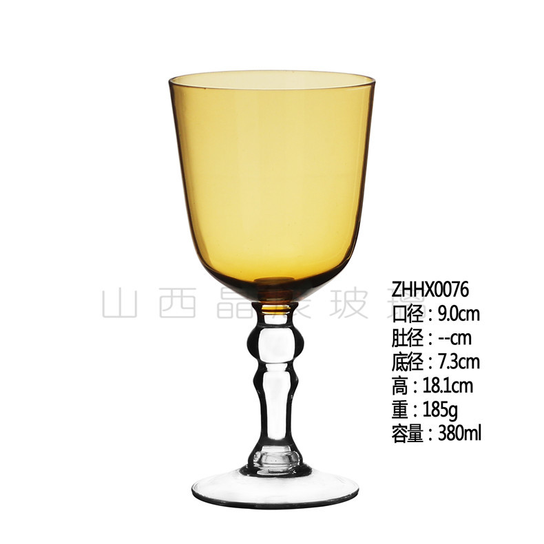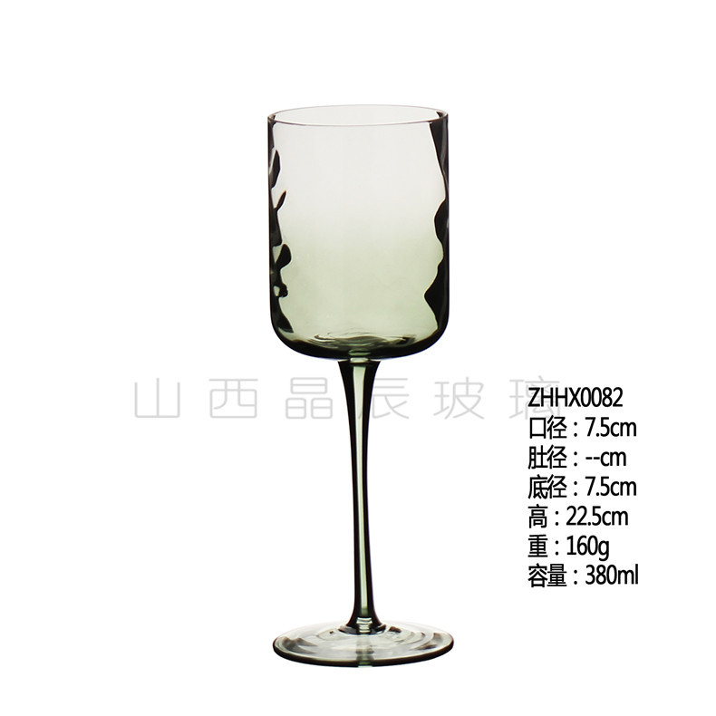 人工吹制13oz红酒杯 380ml水晶红酒杯色料搓杆造型高脚香槟鸡尾杯