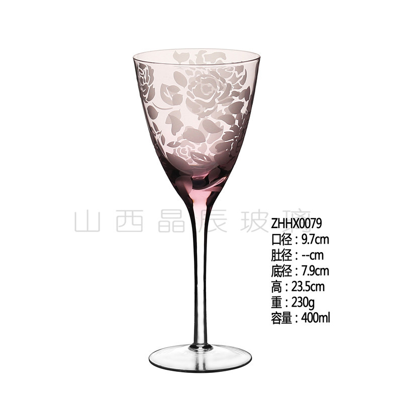 人工吹制14oz红酒杯 400ml水晶红酒杯套色料喷砂高脚杯鸡尾杯
