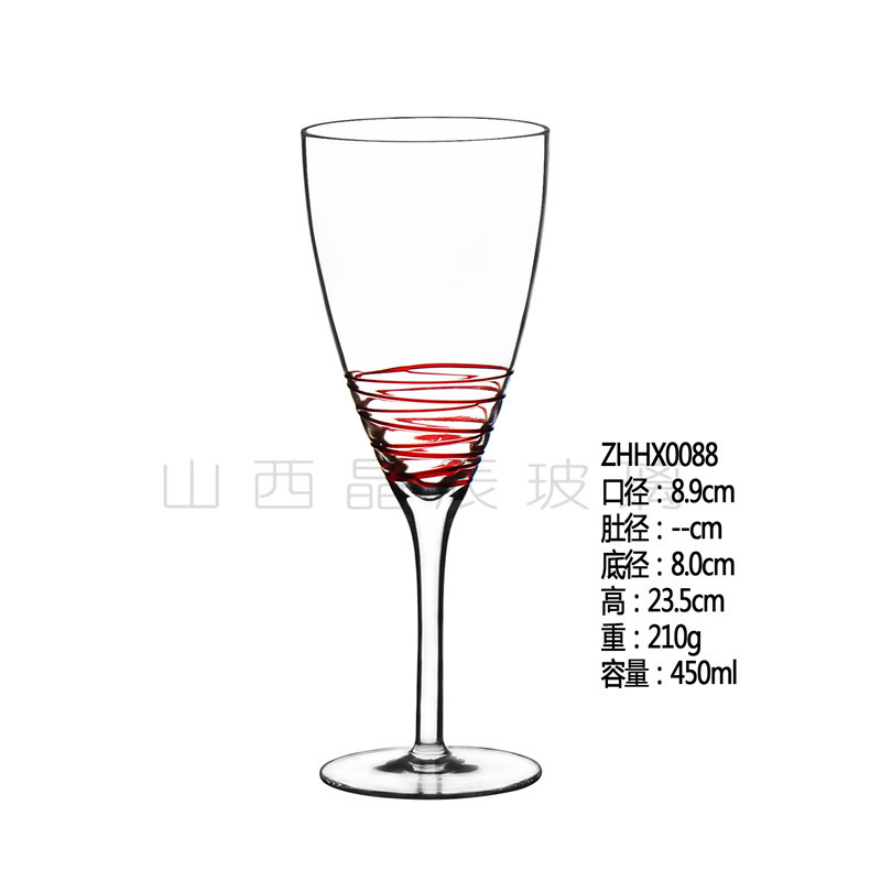 人工吹制15oz红酒杯 450ml水晶红酒杯色料缠丝广口杯高脚杯鸡尾杯