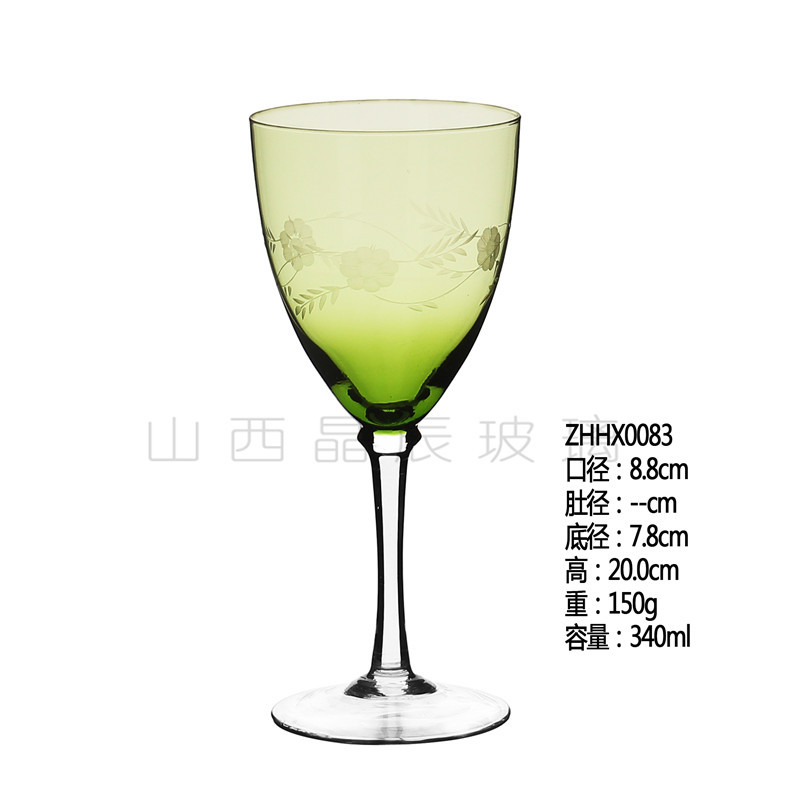 人工吹制11oz红酒杯 320ml水晶红酒杯色料蒙砂酸洗高脚杯鸡尾杯