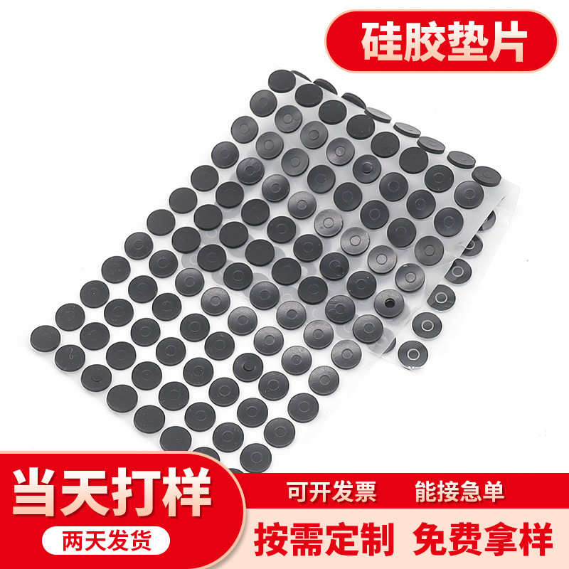 厂家直销硅胶垫片黑色防滑减震脚垫背胶自粘胶垫防水密封圈模切冲