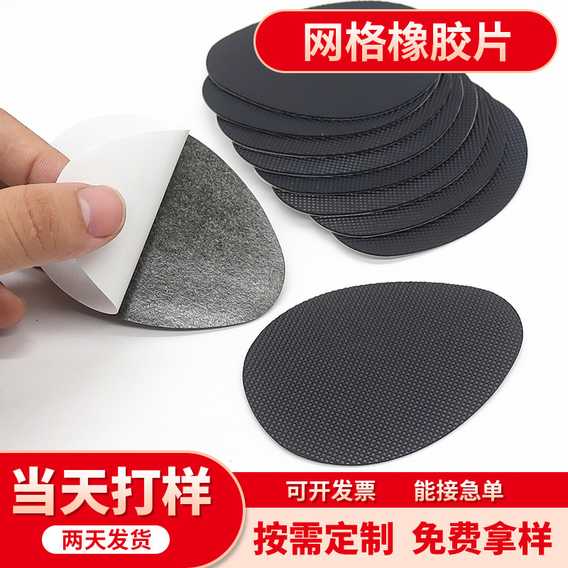 厂家货源网格橡胶片黑色水滴形防滑减震胶垫家具桌椅耐磨脚垫自粘