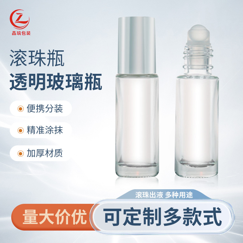晶璃玻璃化妆品加白盖直圆玻璃瓶5ml滚珠瓶精油分装走珠小样精华
